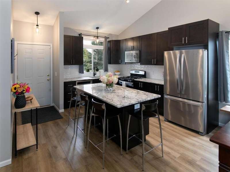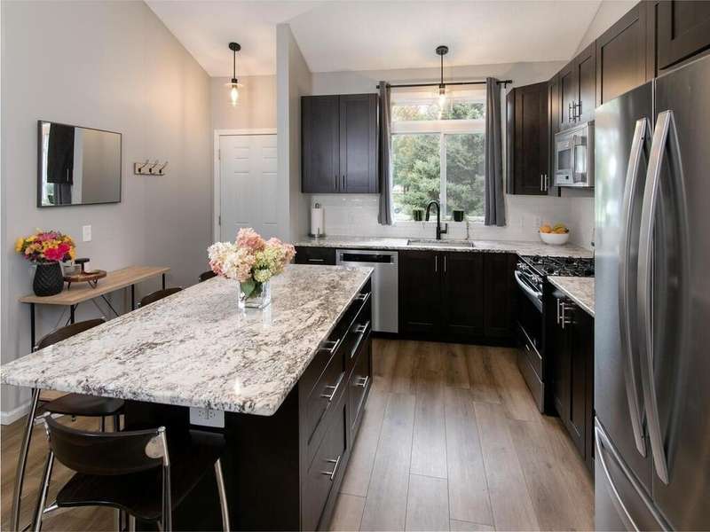 *Seller will pay .5 point toward permanent interest rate buy down with acceptable offer. Step inside this beautifully updated end-unit townhome where modern finishes meet everyday convenience. Fresh flooring, new paint, updated light fixtures and sleek railings give the entire home a clean, contemporary look. Remodeled kitchen with new cabinets, granite countertops, extended center island and stainless-steel appliances. The vaulted main living area creates an open and airy feel, while the family room flows seamlessly to a large patio designed for outdoor gatherings. Two spacious bedrooms upstairs each feature walk-in closets, and a flexible main-level room works perfectly as a third bedroom or home office with a nearby 3/4 bath. Laundry is on the main level for easy access, plus a crawl space beneath the kitchen, dining, and laundry offers extra storage. Just minutes from Hwy 169, shopping, and restaurants, this home is as practical as it is stylish!