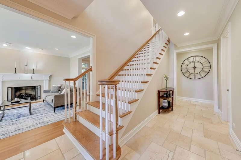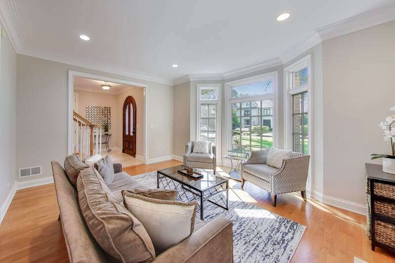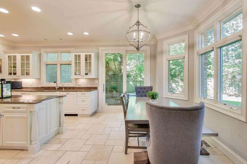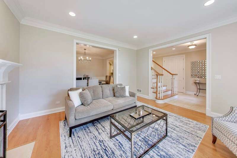 Welcome to your custom-built, all-brick residence nestled on a quiet, tree-lined street in highly coveted Glen Oak Acres. A stunning arched entry and solid handcrafted front door set the stage for what's inside. Beyond the foyer, a bright and welcoming formal living room opens seamlessly to the elegant dining room, creating the perfect setting for gatherings and celebrations. The chef's kitchen is a true centerpiece, featuring crisp white cabinetry, granite countertops, stainless steel appliances including a double oven, a generous island, and an inviting eat-in area with direct access to the patio. Just beyond, the spacious family room offers custom built-ins, a dramatic stone fireplace, and sliding doors that open to a second patio and firepit, creating effortless indoor-outdoor living. The main level also includes a refined home office, a well-appointed laundry/mudroom with built-in lockers, and a stylish guest bath. Upstairs, retreat to the expansive primary suite, complete with its own fireplace, two walk-in closets, and a spa-inspired en suite bath. Two large bedrooms share a Jack-and-Jill bath, while a third enjoys its own private en suite. The beautifully finished lower level provides exceptional additional living space, featuring a spacious recreation area with a built-in bar, a versatile second room ideal for guests or a media lounge, full bath and a convenient storage room. Outside, the backyard is a private oasis designed for both relaxation and entertaining, with a dining patio and new built-in gas grill, a dedicated lounging area, and a newly constructed firepit-all within the privacy of a fully fenced yard. Located within Glenview's award-winning District 34 schools-Lyon Elementary, Pleasant Ridge, Attea Middle, and Glenbrook South High School-you'll also enjoy proximity to Cole Park's baseball fields, basketball and tennis courts, pickleball, playground, and more. Just minutes away, downtown Glenview offers a vibrant mix of shops, dining, and exciting new redevelopment. This home combines timeless craftsmanship with modern luxury-truly offering it all.