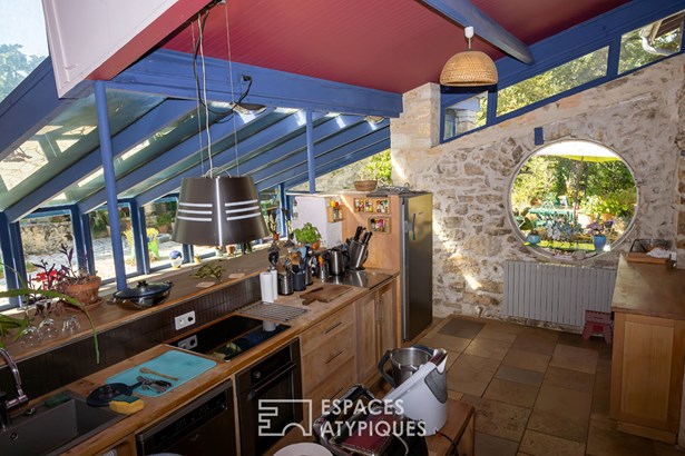 An invitation to creativity and freedom of arrangement. A bright, lively and inspiring interior allows us to discover several glass roofs where we find a beautiful bright room, an artist's studio conducive to creation, painting, writing or meditation.