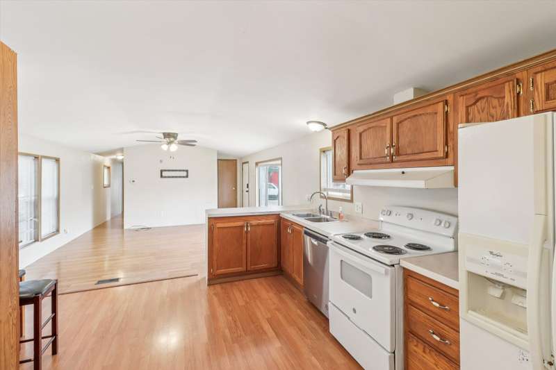 Nice mobile home in Slater. Well kept and ready to movie in. Spacious open living room with laminate floors and all appl. Kitchen with many cabinets, breakfast bar, a serving counter/buffet and eating area and laminate floors. Laundry area inc. Washer/dryer. Large primary bedroom with new carpet, updated bath. Double vanities and big walk-in shower. Two nice sized family bedrooms with new carpet and one with a bow window for a bright and sunny natural light. Full hall bath. Small town living and close to Interstate. Call for a private showing today! 515-669-5595 Julia