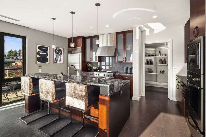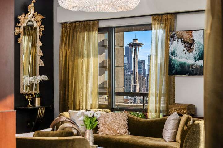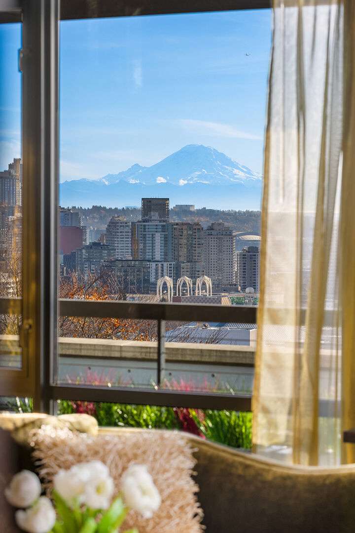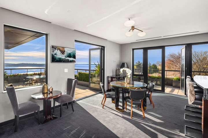 A Christmas gift to yourself, one you'll never want to return! This top-floor penthouse crowns one of Seattle’s most distinguished boutique buildings, blending sweeping views of Puget Sound, Mt. Rainier, and the Olympics with the polished glamour of Hollywood Regency design. Think mirrored surfaces, refined detailing, and a touch of cinematic drama throughout. Three private terraces extend the living space outdoors, ideal for cocktail hours, sunset views, or quiet evenings above the city. Pet-friendly, concierge-served, and highly walkable to everything Queen Anne has to offer. Luxury living with timeless star quality.