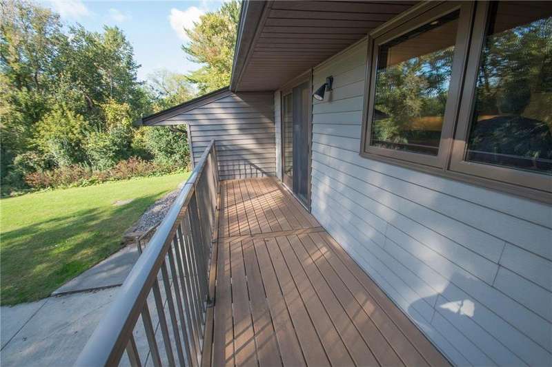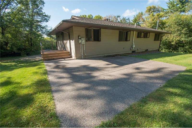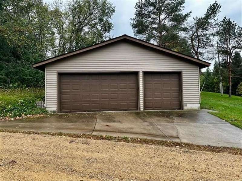 Light fixer-upper on acreage and a 2nd garage for additional hobby or small business space. Great quiet location with solitude and privacy that 3+ acres provides. The home has steel siding, leaf-guard gutters (TRASFERRABLE WARRANTY), 50 year shingles (TRANSFERRABLE WARRANTY) Eagle windows (TRANSFERRABLE GLASS WARRANTY) plus a recently updated eat-in kitchen with Cambria countertops R-O drinking water, and custom cherry cabinetry. The upstairs boasts two maintenance-free decks, living room with wood-burning fireplace, three nice-size bedrooms including a private owner's suite, and a laundry. The lookout lower level includes a family room with a 2nd wood-burning fireplace, potential for a 4th bedroom, and a storage room. Rounding out this great acreage property is a geothermal heating and cooling system for very low energy bills.
