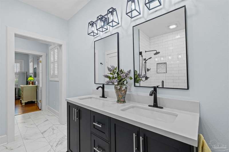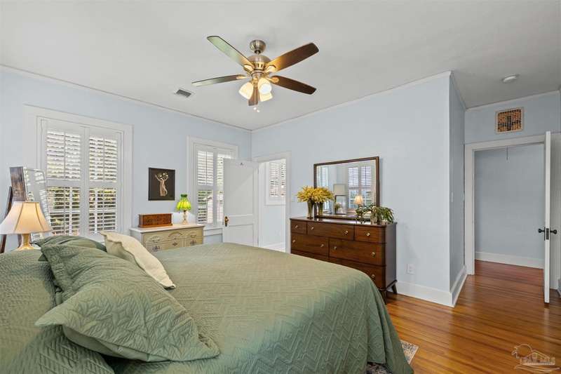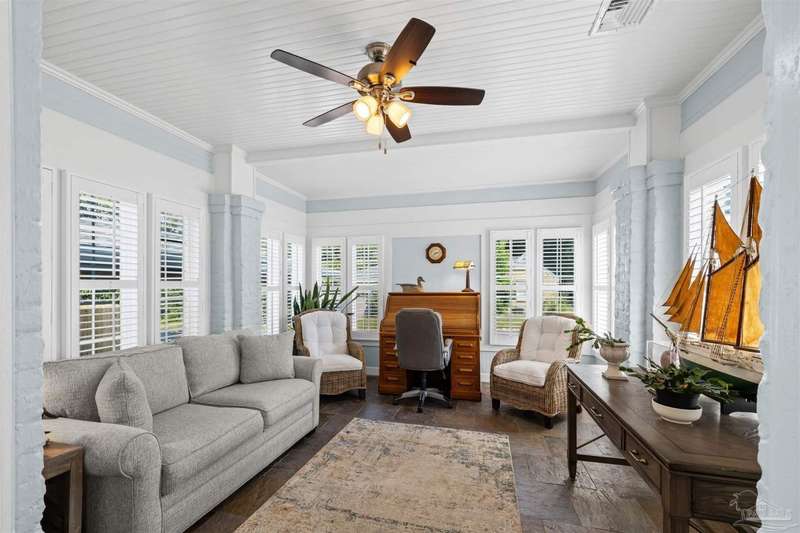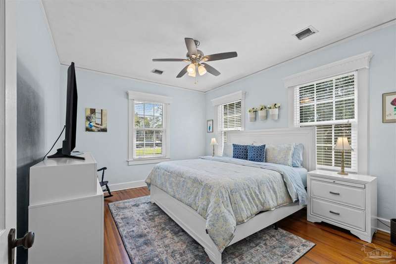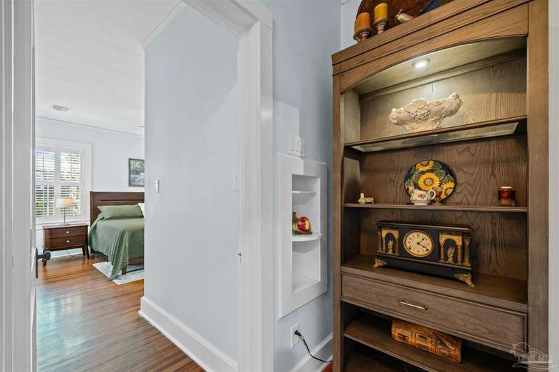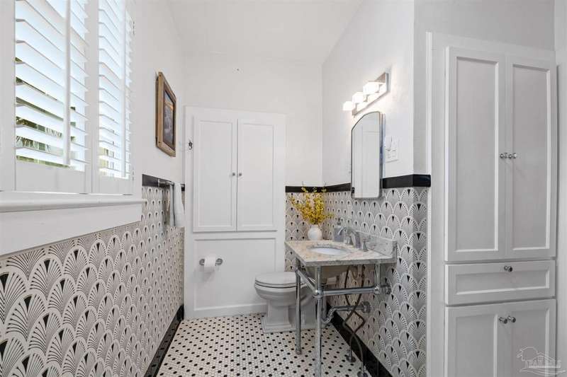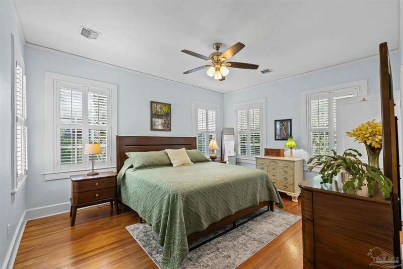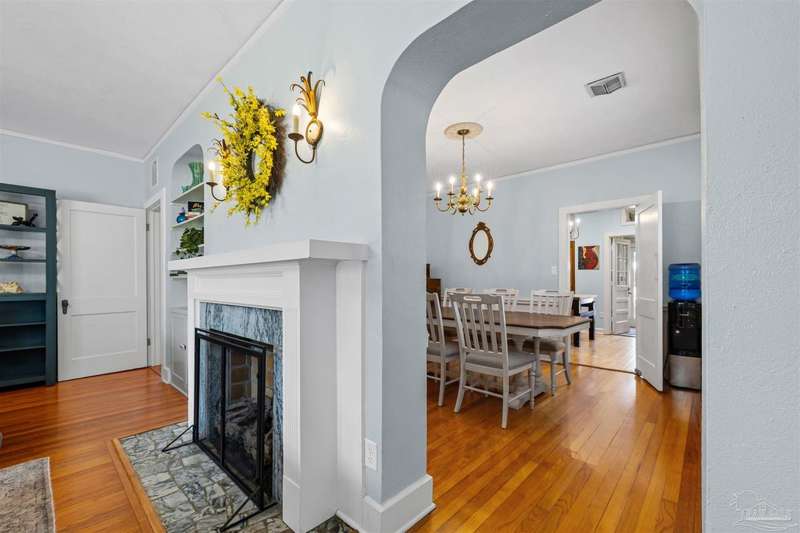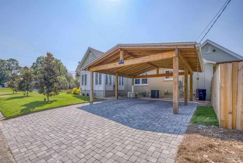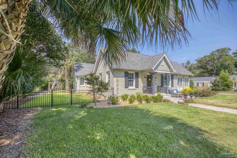 ** OPEN HOUSE WEEKEND** Friday, Oct 10th from 4 to 6 pm, Sat & Sun Oct 11 & 12th from 12 to 3 pm. Fall in love with this charming 1939 home in North Hill Highlands. The beautiful original hardwood floors, 9 foot ceilings, and formal dining room are some of its showcase features from a bygone era. The elegant formal living room has a gas fireplace and gorgeous hardwood floors. The living room opens to the Eastern facing den/sunroom with beautiful wrap around windows that make this a perfect morning room. The primary suite has a newly remodeled bathroom with marble-look tile, glass surround shower, dual vanity and separate water closet. This home as been wonderfully upgraded to keep its character with some modern necessities. Seller's upgrades reduced their insurance premium by $5,000. They currently pay just under $4,000/yr. RECENT UPGRADES include: roof replacement in 2022, whole house completely rewired with new panel, whole house generator, every window replaced with impact resistant windows, hurricane devices for front and back doors, custom plantation shutters, tankless water heater, stainless gas stove and appliances, primary bathroom completely remodeled, added gutters and leaf guards, new wooden deck and carport, new landscaping and pavers for walkways and driveway. The detatched building has a 100 sq ft studio/office with window AC, a 100 sq ft workshop with electricity, an additional storage closet, plus a shed for a mower. This immaculate home is 2 blocks outside of the North Hill Preservation District, where you have the old-world charm of 1939 without the restrictions of North Hill. 2022 Roof, 2014 tankless water heater, 2013 HVAC. Close to historic downtown Pensacola, Wahoo Stadium, Bay Center, Interstate 110, Pensacola International Airport, and 15 minutes to our famous white sand Gulf Coast beaches. W/D, free standing kitchen island and the microwave can convey.