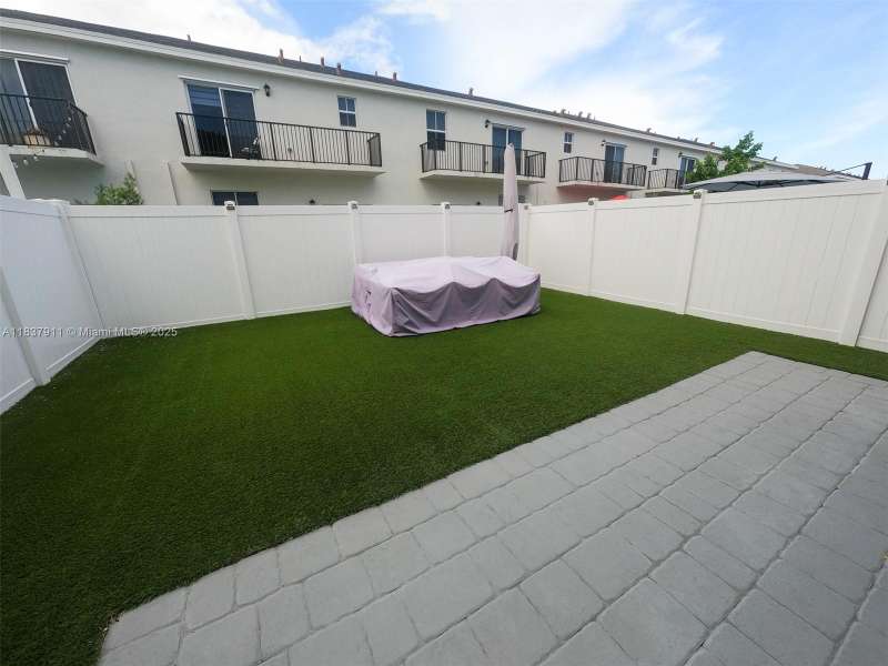 Beautiful 3-bedroom, 2.5-bath home located in a quiet community with low HOA fees. Features a covered garage for 1 car plus space for 2 more. Fully fenced backyard with low-maintenance artificial grass, perfect for relaxing or entertaining. Sold fully furnished, with furniture negotiable. Modern kitchen with stainless steel appliances, washer, and dryer included. The primary bedroom offers a lovely private balcony to unwind. Conveniently located near supermarkets, shops, and everything you need for a comfortable lifestyle. Move-in ready!