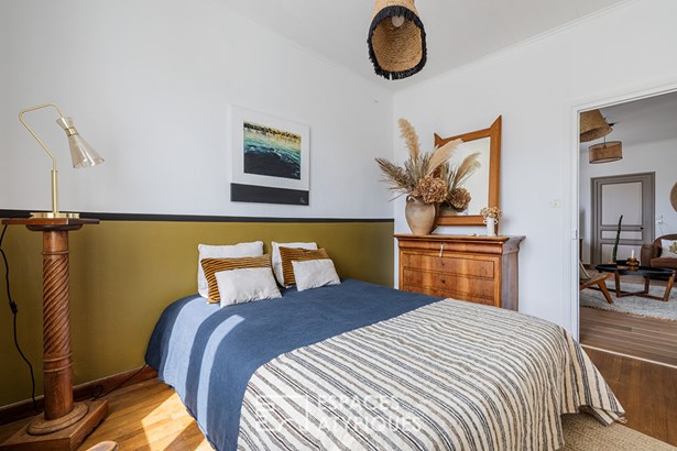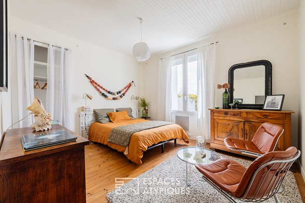 Three bedrooms are located there, including one charmingly nestled in an alcove that can be easily partitioned according to your wishes. A bathroom with toilet and a laundry area complete this house with a strong character, enhanced by the summer spirit established by the owners. The annex (approximately 43.5 m2) awaiting renovation, intended for younger guests or friends, has a kitchen with a dining area, a bedroom opening onto the garden, a bathroom with a separate toilet, as well as a second bedroom with independent access. A space to personalize, offering all the autonomy sought.