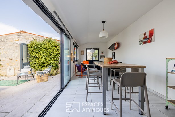 Located on the west coast of the commune of Dolus d'Oleron, near the Perroche beach, in the heart of a quiet and residential area, this property, set on a plot of 350 m2, seduces with its authenticity and character.