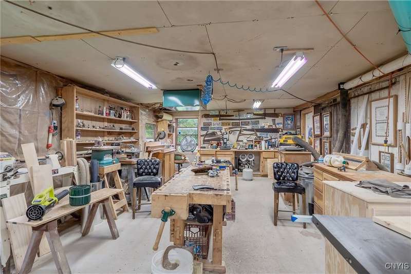 Once-in-a-Lifetime Opportunity in Marcellus Schools!Welcome home to this amazing 3 bedroom, 2.5 bath residence on 19.18 acres with a remarkable pole barn/workshop and endless possibilities!A wide, welcoming driveway leads to the 3-car garage with side bay entry. Enter through the charming front solarium into the foyer and be greeted by the home's original woodwork, trim, and timeless character.The inviting living room with hardwood floors flows into the dining room, which opens to a custom kitchen featuring walnut and maple cabinetry, solid surface counters, and updated appliances. A convenient side entrance with mudroom provides direct access to the garage and basement, offering plenty of storage.From the foyer, a turned staircase with greenhouse window leads upstairs to two generously sized bedrooms and a full bath. Off the kitchen, step down into the large family room with sliders to the deck and an adjoining sunroom, the perfect spot to enjoy peaceful views of your private yard. Upstairs, a spiral staircase takes you to the primary suite retreat with en-suite bath and lovely views.Outside, the land is a true gem ? with a mix of cleared lawn shaded by mature walnut trees, open fields, and wooded areas. The pole barn/workshop with water and electric is outstanding, complete with a concrete floor, back garage, and endless space for storage, hobbies, or even horses.Updates include roof, siding, boiler, mini-splits, insulation, appliances, and more, making this "good bones" home a rare and ready opportunity.All this, in a prime location within the award-winning Marcellus School District, with easy access to conveniences. This is truly a once-in-a-lifetime chance to own a special home with acreage, character, and possibilities!