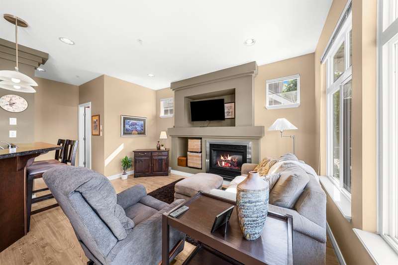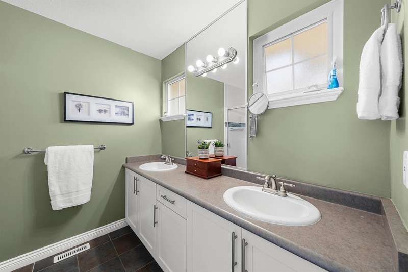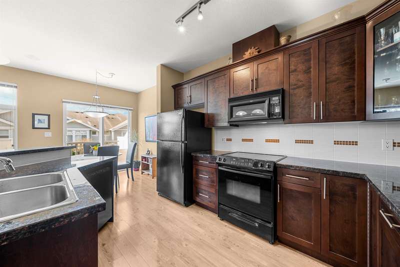 Tucked quietly at the back of Nature’s Landing, this spacious end-unit townhome offers nearly 2,000 sqft of well-designed living space. Enjoy 3 bedrooms, 3 baths, A/C, and a full rec room below. The main level features a classic layout with a sunny, south-facing balcony and level entry front door with fenced yard, perfect for pets or play. A rare find: side-by-side double garage plus full driveway parking for two more vehicles! Located beside James Anderson Park and close to schools, shopping, recreation, and transit, this is a home that offers space, comfort, and unbeatable convenience.