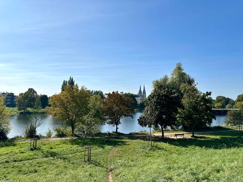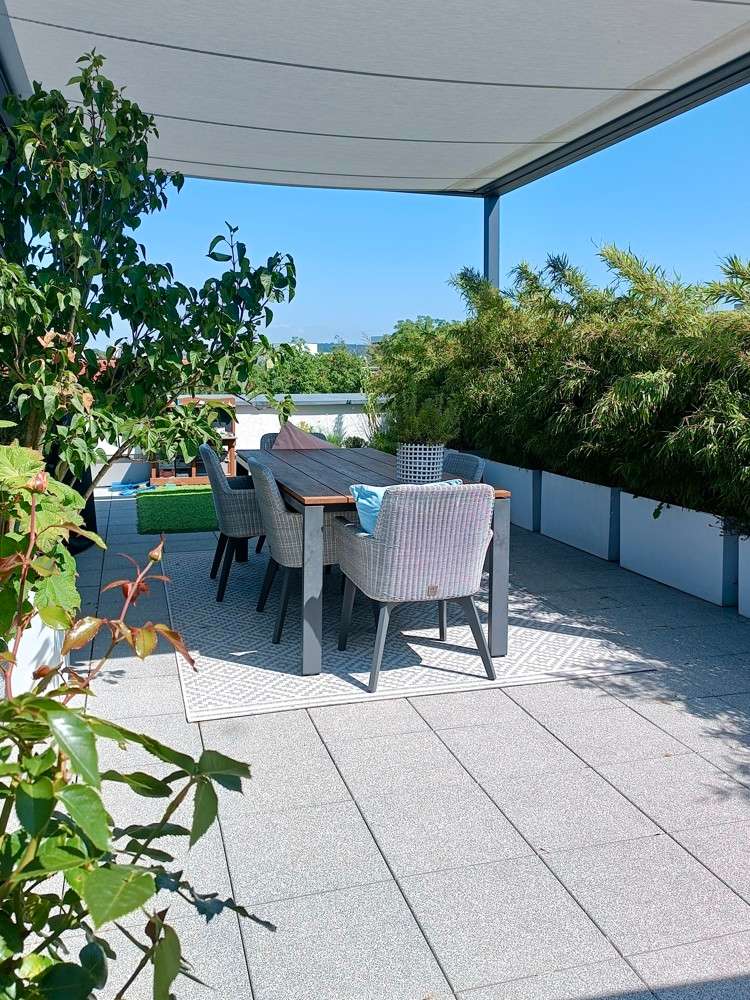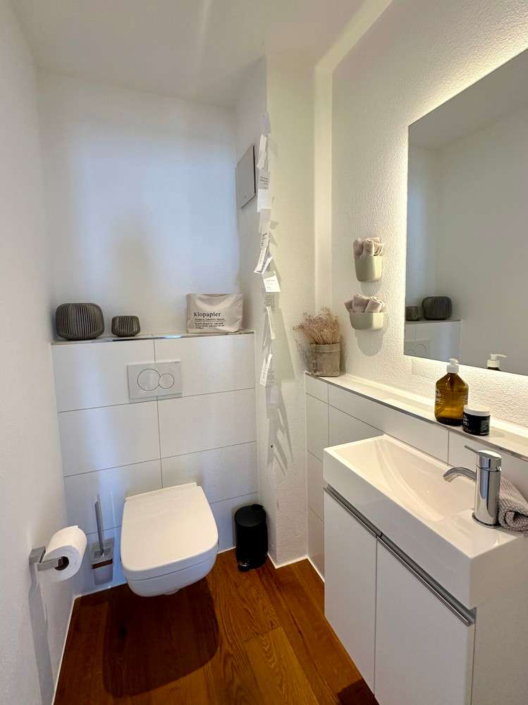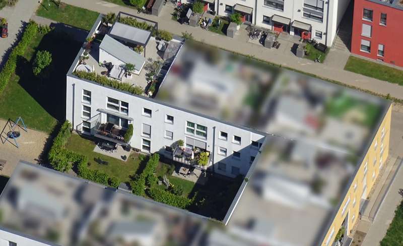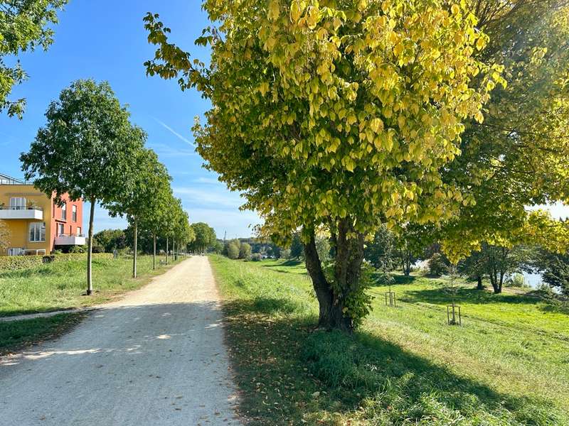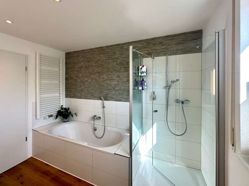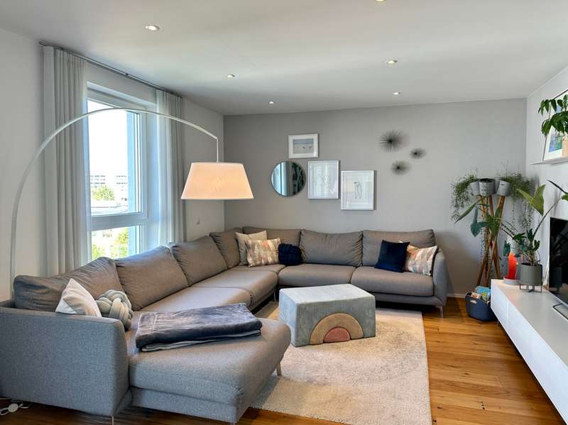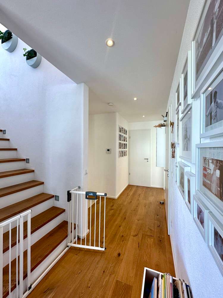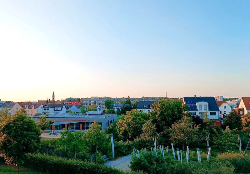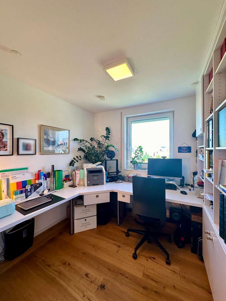Welcome to your new home, an exceptional 4-room apartment located on the second floor of a first-class, well-maintained residential complex. This property is located in one of the best residential areas in Regensburg, directly on the picturesque Danube floodplains. The proximity to Regensburg's historic old town makes it easy to reach on foot or by bicycle. This apartment impresses with its high-quality fittings and outstanding construction quality with excellent energy values. Inviting solid oak parquet flooring, energy-efficient triple-glazed floor-to-ceiling windows and a spacious hallway area with ample space for a wardrobe greet you as you enter the apartment. The open plan living and dining area is a highlight of this property and features a spacious, first-class fitted kitchen with counter space. The high-quality Nero Assoluto granite worktop exudes elegance, while all the necessary technical appliances from renowned brands are already integrated, including an induction hob. The spacious dining area offers plenty of room for the whole family and provides a wonderful view of the surrounding area through floor-to-ceiling windows. In the spacious living room, you will find enough room for a comfortable sofa and living area. The integrated ceiling downlighting creates a pleasant atmosphere. Another hallway leads you into the spacious bedroom, which has room for a large bed and a closet. The guest WC is a practical addition. The bathroom pampers you with luxurious details, including a large-format, timeless tiled backsplash, a double washbasin with vanity units and high-quality bathroom fittings from the renowned company Heibad and dimmable ceiling spotlights. A spacious bathtub invites you to relax after a long day at work, while the floor-to-ceiling shower offers additional comfort. The children's room is generously proportioned and offers a pleasant daylight atmosphere thanks to floor-to-ceiling windows. The study can also be used flexibly as a guest room or dressing room. The absolute highlight of this property is undoubtedly the spacious roof terrace with 71 square meters of space, which extends above the apartment. You can reach this oasis of relaxation via an elegant staircase with elegant wooden flooring and dimmable ceiling spotlights, as well as side staircase lighting. From here, you can enjoy a breathtaking panoramic view over the whole of Regensburg and the surrounding area. The roof terrace already has a beautiful stock of plants in numerous plant troughs. A high-quality, electric aluminum shading system provides horizontal and vertical shading with an awning. Here you will find plenty of space for a children's play area, a dining area with a barbecue and even the option of installing a large hot tub - perfect for enjoying the picturesque sunsets in the evening in a pleasant atmosphere. This apartment is an absolute highlight on the Regensburg real estate market. It not only offers an upscale living ambience, but also a unique roof terrace with spectacular views. See this exclusive dream home for yourself and arrange a viewing appointment. You should not miss this opportunity! This exquisite property also includes a large cellar compartment (approx. 13 sqm) and a private parking space for your car with electric hook-up (EUR 25,000). There is also a small utility room for washing machine and dryer under the stairs. There are also plenty of parking spaces in this traffic-calmed zone at the end of the residential street.