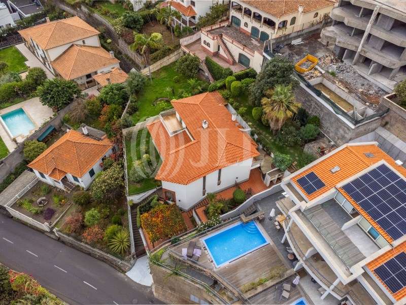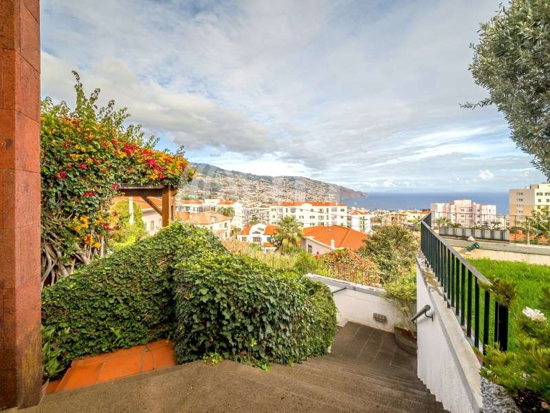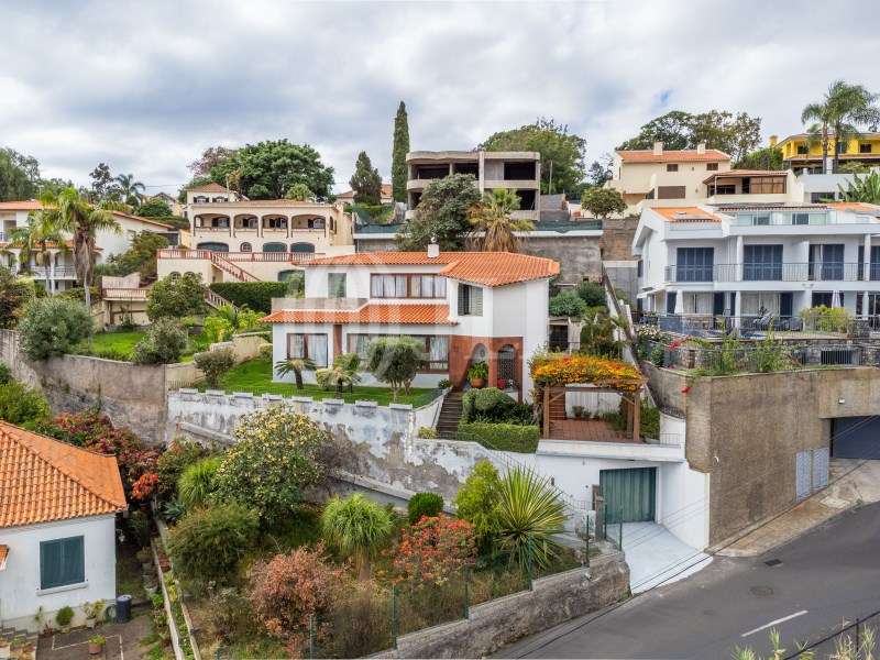 Moradia T5 com 308 m² de área bruta de construção, jardim, garagem e uma vista fantástica para a baía do Funchal, inserida num lote de 723 m², no Funchal, na Madeira. Composta por sala de estar, sala de descanso, sala de TV, sala de jantar, cozinha e zona de refeições, arrecadação de apoio à cozinha, cinco quartos, um deles em suíte e com varanda ampla, duas casas de banho de apoio e uma casa de banho no exterior, zona de lavandaria e arrumos, canil, gaiolas para pássaros, churrasqueira, jardins amplos e bem cuidados, garagem para 2 carros. Com possibilidade de construir uma piscina. Próxima de vários serviços e acessos à via rápida, e a apenas 5 minutos do centro do Funchal. Categoria Energética: D #ref:93873