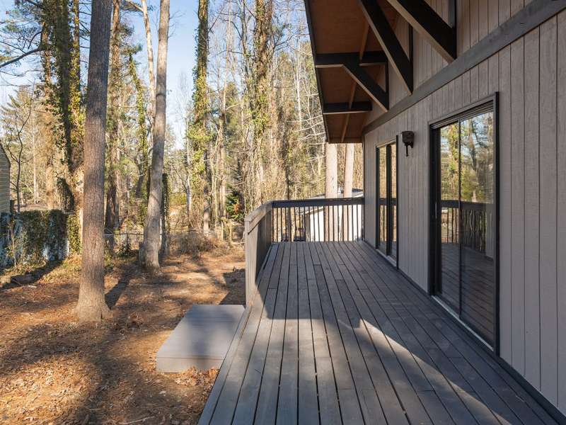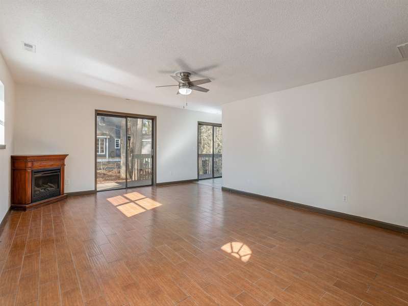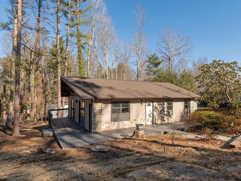 Super clean and move-in ready! Two bedroom/ two bath home plus office! New architectural shingle roof installed Nov. 2024. Fresh paint throughout! The living room features an unvented gas log fireplace, updated ceiling fan, tile floor and sliding glass door to the side deck. The spacious kitchen has space for dining area or nice island and waterproof vinyl flooring. The office adjoins the kitchen and could serve as a dining room, if preferred. Hall bath has updated tub/shower and flooring. The primary suite has bath with step-in tile shower, and bedroom with tile floor and updated ceiling fan. The second bedroom has tile floor and two closets. Voluntary POA dues of $125/ year will get you use of the lake for boating, swimming and fishing! STR potential!