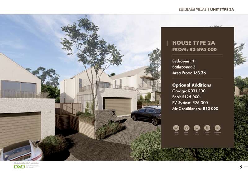 Don't miss out on this stunning new development called Zululami Villas, where coastal exclusivity meets modern elegance! These 22 premium residences located in one of KZN’s premier private estates along the stunning North Coast. Enveloped by natural coastal grasslands and offering breathtaking views, these homes present a rare chance to live in unparalleled luxury. Prices from R3 895 000 for a 3 Bedroom 2 Bathroom Double Story Villa Features include: Open plan kitchen, separate scullery, open plan lounge and dining areas, smart meters, aircon ready, landscaped garden, secured, fenced Estate, low levies, visitor parking, swimming pool In addition to all of this all residents & homeowners of Zululami Villas can enjoy the numerous amenities, benefits & prestige of Zululami Estate. Call now for more information!