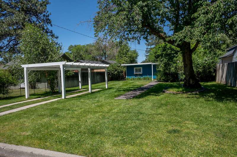 Come to ''Cherry Tree Cottage at Wiestoria'' in the heart of Mid-town Bend. Solid home tucked into a sweet quiet treed area on paved street, close to shopping, restaurants, parks, medical, & everything ''Bend''. Private spacious 140' lot features cherry, elm, birch, flowering plants, & lawns. Spotless appealing charm in this 2 bedroom, 1 bath beauty, 829 sq.ft. + a nearly 400 sq.ft. guest cottage. Covered patios in the fenced-sprinkled-gated-landscaped backyard, & wonderful large pergola in front. Eat-in kitchen is open to the living area; updated windows all around for natural light, utility & pantry area for ideal storage. Served by newer gas furnace, water heater, plus alarm system. Guest cottage is perfect for hosting with full bath, vaulted ceiling, & doubles as a perfect home office, served by electric heat, spacious back entry hall, large garden shed attached, with an extra alley entrance & parking. You'll fall in love with this excellent value in popular Mid-town Ben