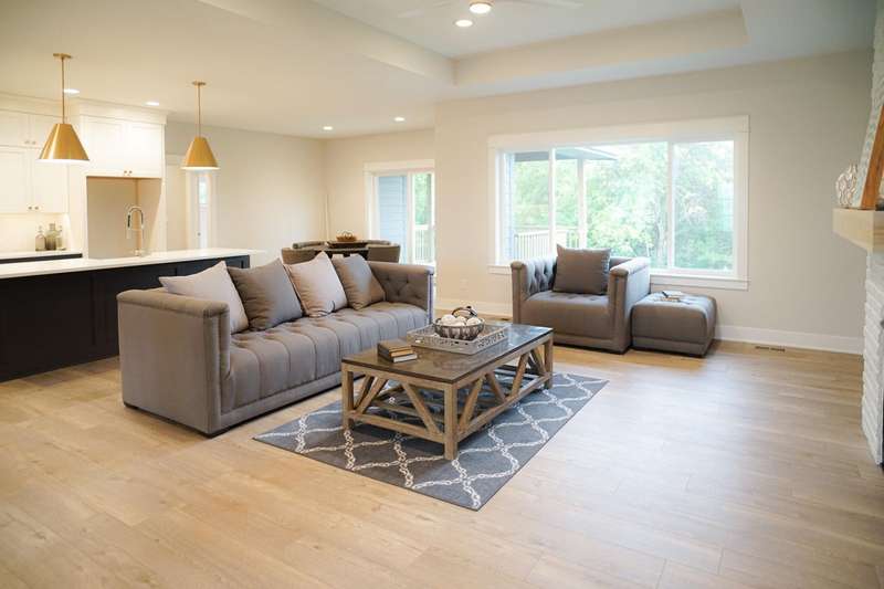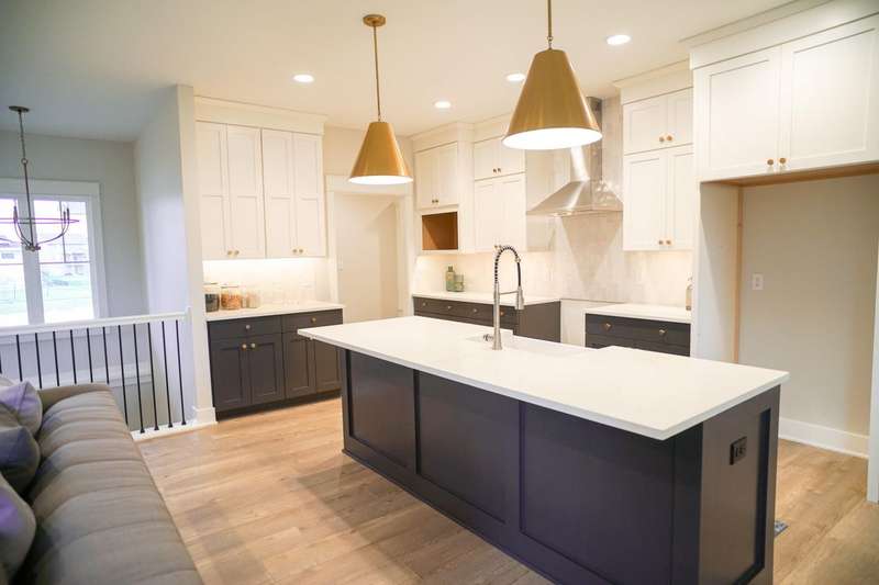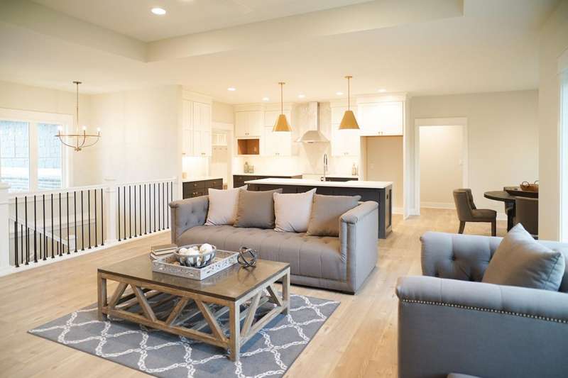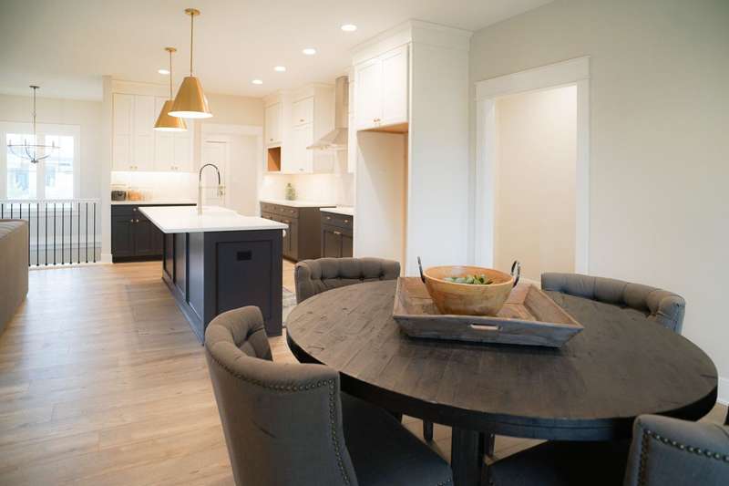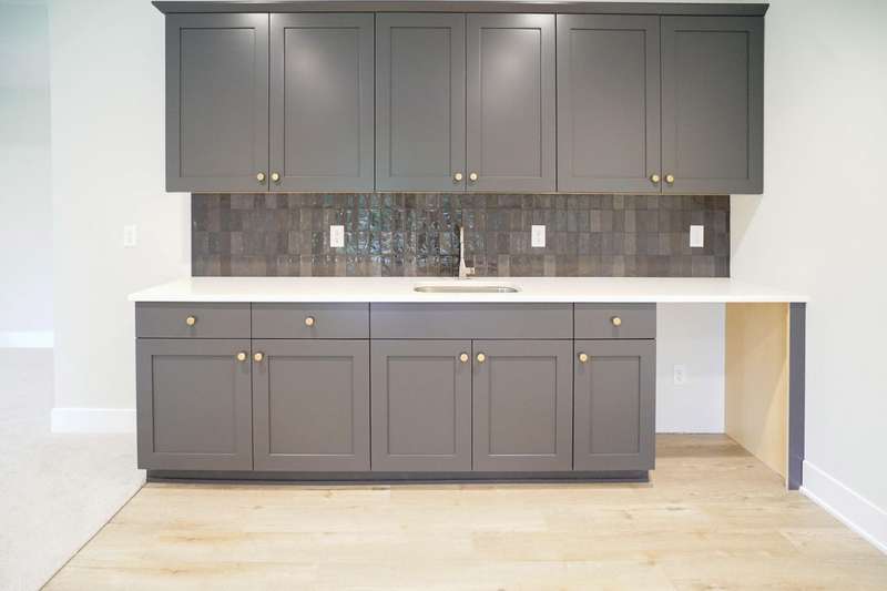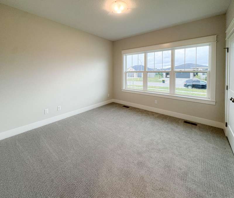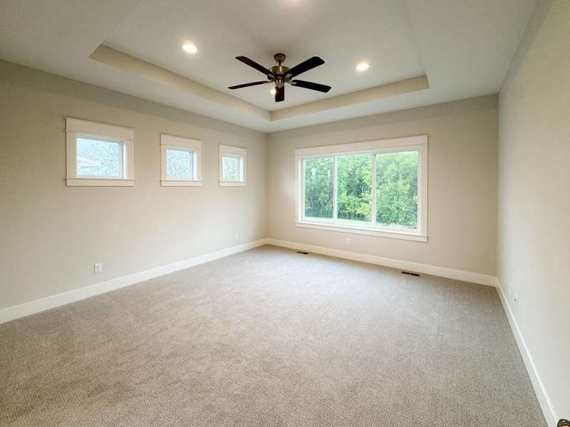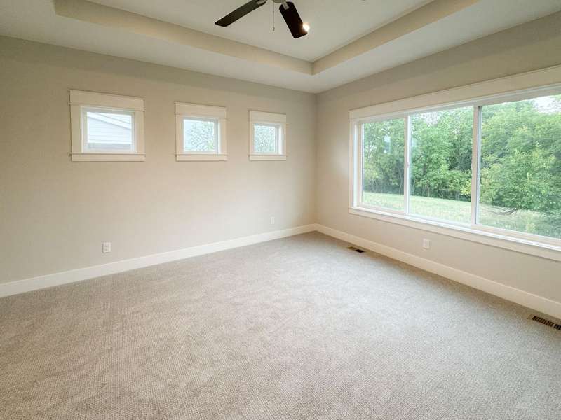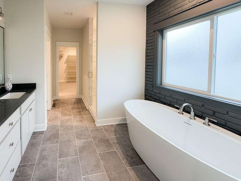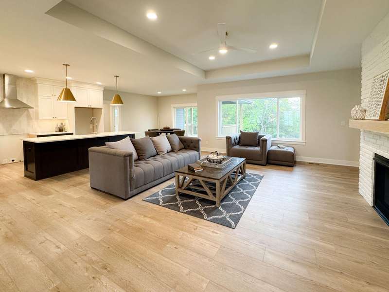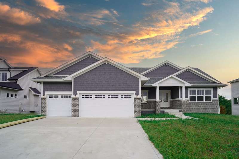 This beautiful home features an open-concept main level with a spacious kitchen that includes a large island, walk-in pantry, tile backsplash, and soft-close cabinetry. The living room showcases a floor-to-ceiling stone fireplace and tray ceiling. The owner's suite offers a tiled shower, soaker tub, double vanities, brick accent wall, and walk-in closet with direct access to the laundry room. Two additional bedrooms and a full bath complete the main level.The finished walk-out basement includes a large rec room, wet bar, additional bedroom, and full bath, all with 9' ceilings