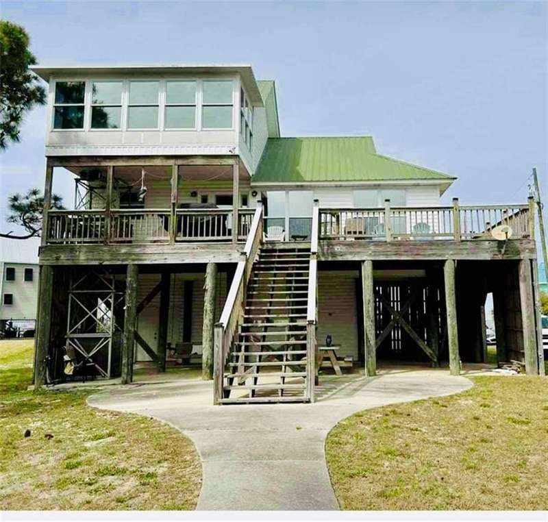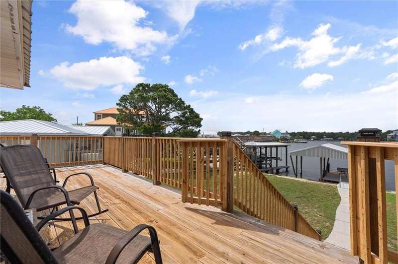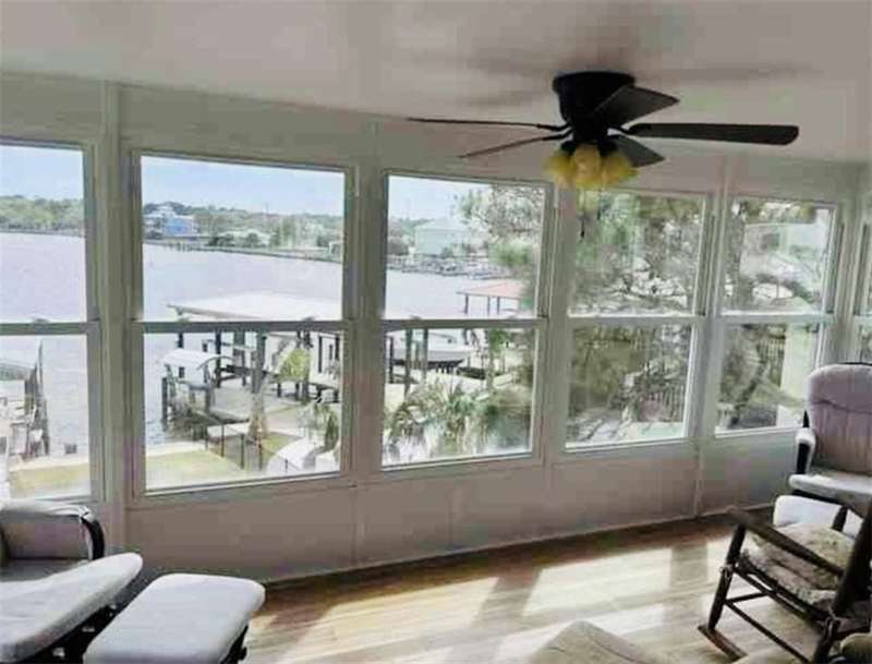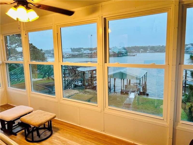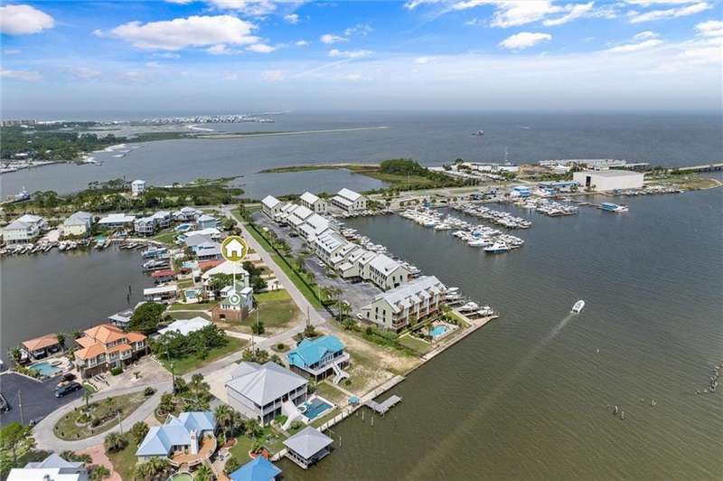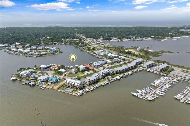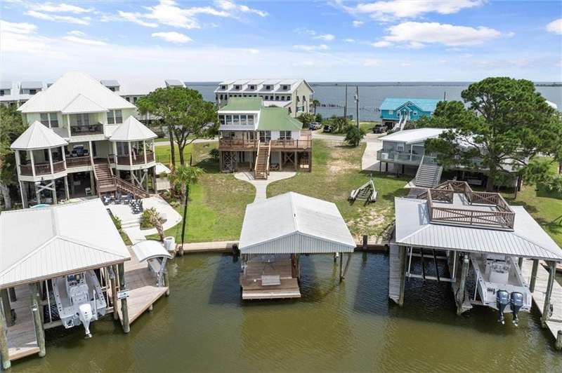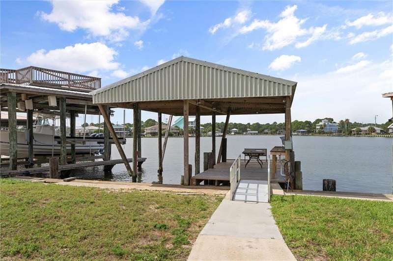 There are NO restrictions on renting this home. Can be rented long term, and short term with no waiting list. Live here and every day is a vacation! Protected waters with 50 feet on Indian Bay. One minute into the Mobile Bay by boat. Covered boat dock and sea wall, covered deck with fish cleaning station, and a beautiful view from a wraparound porch with two sunrooms. The downstairs is completely enclosed with washout walls. This gives you a wonderful place to store all your fishing equipment, boating equipment, and anything you want for playing on the water. The living area is very open with full kitchen, dining room and family room that all adjoin the wraparound porch. Two bedrooms and a bath on the main floor and then a primary bedroom with adjoining bath and adjoining sunroom upstairs. Quietly tucked away at the end of a cul-de-sac that is convenient to everything on the island. Just minutes by bicycle or golf cart to shopping, schools, restaurants, and more. Buyer responsible for verifying all measurements and relevant details.