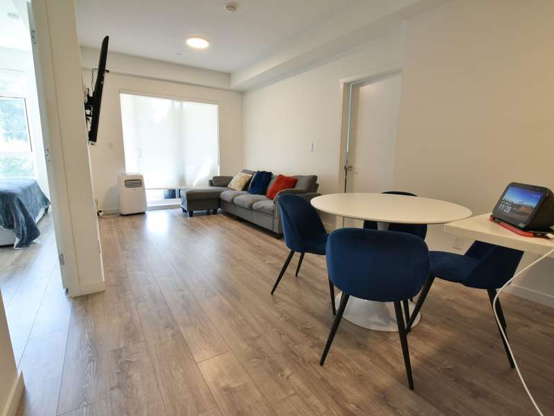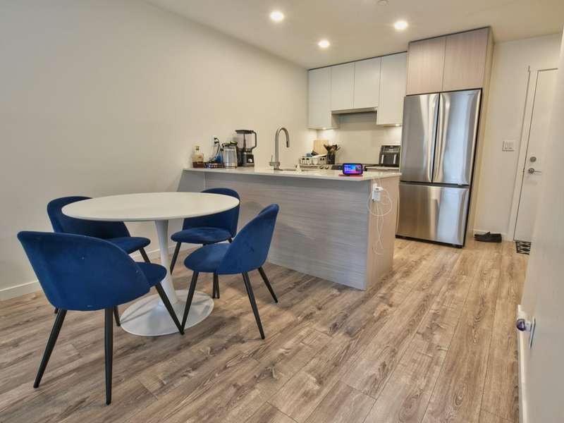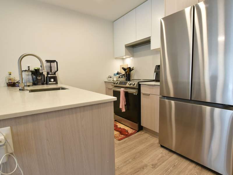 Welcome to Oak & Onyx! This bright and modern 2-bedroom + den condo features a spacious open-concept layout with light-toned laminate flooring and a sleek kitchen complete with quartz countertops and stainless steel appliances. The versatile den is ideal for a home office, study, or extra storage. Perfect for first-time buyers or investors, this home is packed with potential. Residents enjoy excellent amenities including a gym, clubhouse with pool & foosball tables, BBQ area, and playground. Ideally located just steps from Surrey Memorial Hospital, King George SkyTrain, SFU, and Green Timbers Urban Forest. Bonus: 1 secure underground parking stall and 2 storage lockers. Book a private showing today!