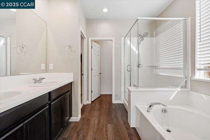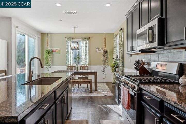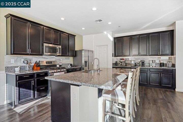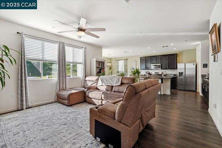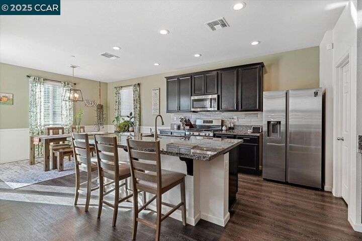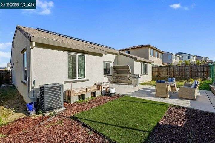 Welcome to this Beautiful Single-Story Home featuring 4-bedroom, 2.5-bathroom home offers a spacious open floor plan that effortlessly blends style and function. The living room flows seamlessly into the kitchen, boasting high ceilings, recessed lighting, and a large island with granite countertops. With generous cabinet and pantry space, stainless steel appliances, the kitchen is perfect for both cooking and entertaining. Plus, enjoy easy access to the patio and yard, ideal for outdoor gatherings. The primary suite is complete with a large closet and a spa-like bathroom featuring double sinks, a separate tub, and shower. Additional features include a tankless water heater and seller-owned solar panels for energy efficiency. Don’t miss the opportunity to make this beautiful home yours!