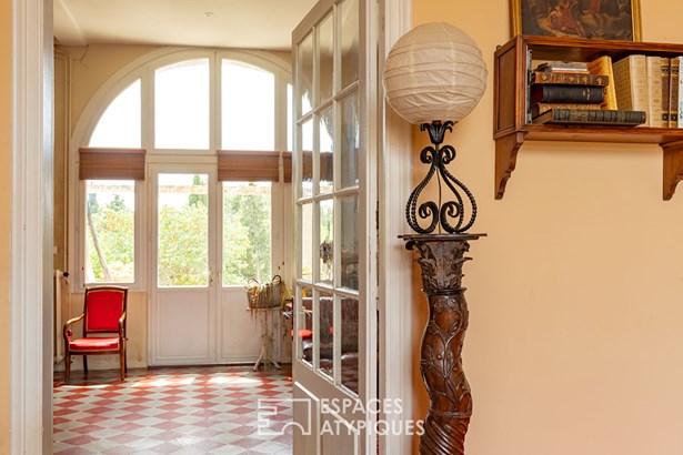 The interior space consists of three independent dwellings: a former late 19th-century stable, elegantly renovated by architect Henri Castella, featuring a cathedral ceiling, travertine floors, four bedrooms, a swimming pool, and a summer kitchen; a family mansion dating from 1848 with five bedrooms, antique terracotta floors, and a large fireplace; and finally, a farmhouse, renovated in 2011, measuring over 400 m2 (4,300 sq ft), with an open-plan kitchen, a large living room, a games room, a panoramic glass roof, five bedrooms, and the potential for conversion into a gym or private cinema.
