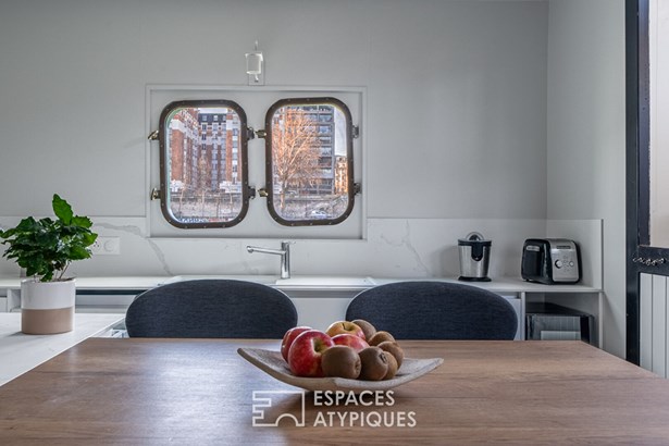 Between a houseboat and a floating apartment, Espaces Atypiques Paris Rive Gauche offers this vessel as a distinctive and peaceful living environment, ideal for those seeking a unique and spacious lifestyle in the heart of the capital.