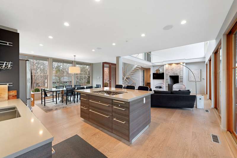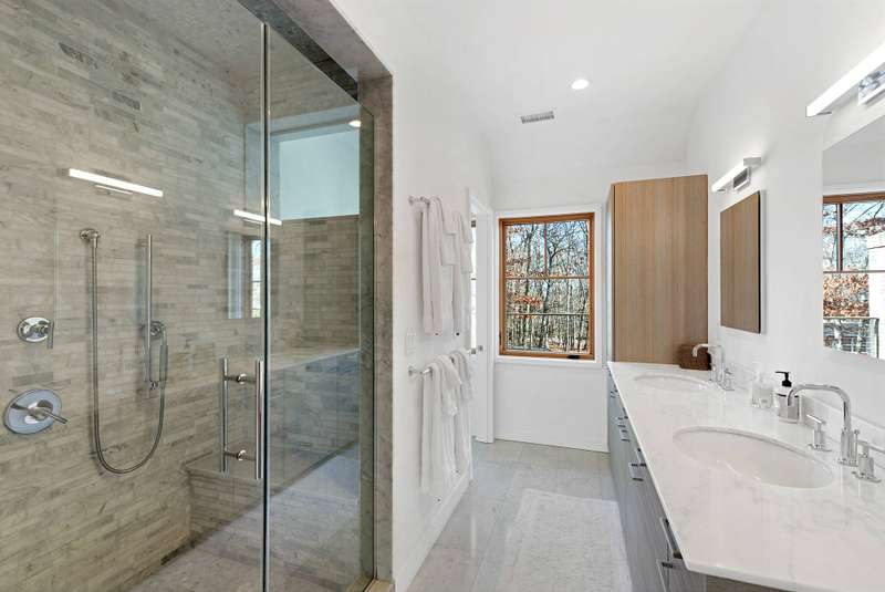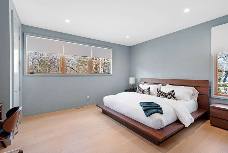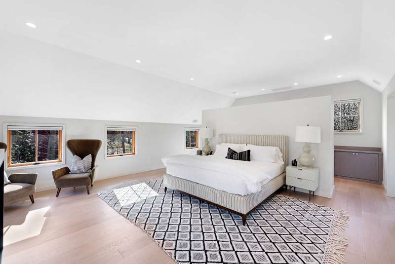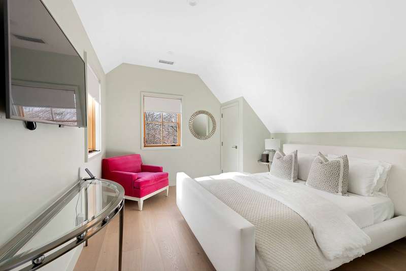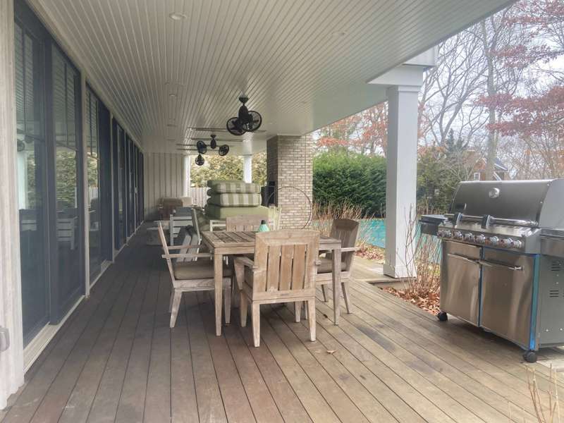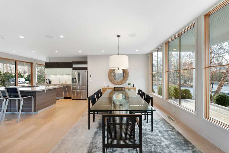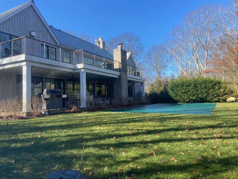 Close to the Village, within a few blocks to a private community beach, and less than 1.5 +\- miles to Havens Beach in Sag Harbor, this stunning, modern farmhouse features 6 bedrooms and 7- and one-half baths across 3,800+\- sf. Multiples of sleek windows and oversized sliders create walls of glass in the grand, double-height living room with a fireplace that opens to the formal dining room and a designer chef's kitchen with a center island and counter dining. The spectacular primary en suite includes a vaulted-tray ceiling, a gas fireplace with a flat screen, and access to a large mahogany deck overlooking the back grounds. A separate guest wing on the 2nd level is accessed across the gallery bridge. Additional guestrooms and bathrooms are well-appointed with marble and contemporary fixtures. An extensive covered mahogany deck includes lounge and dining space, ceiling fans, an outdoor fireplace, and a stainless grill. Beyond, lush lawns and landscaping surround the zero-edge heated pool and spa. Additional amenities include a den with fireplace and flat screen, light, wide-plank hardwood flooring throughout, and a dedicated 1st-floor laundry room. Listing ID:897595
