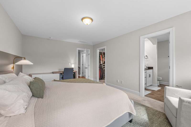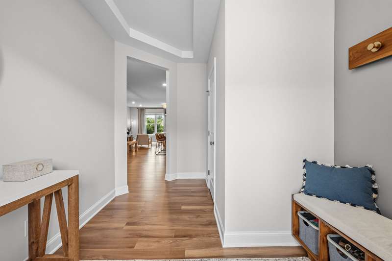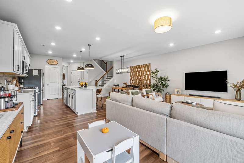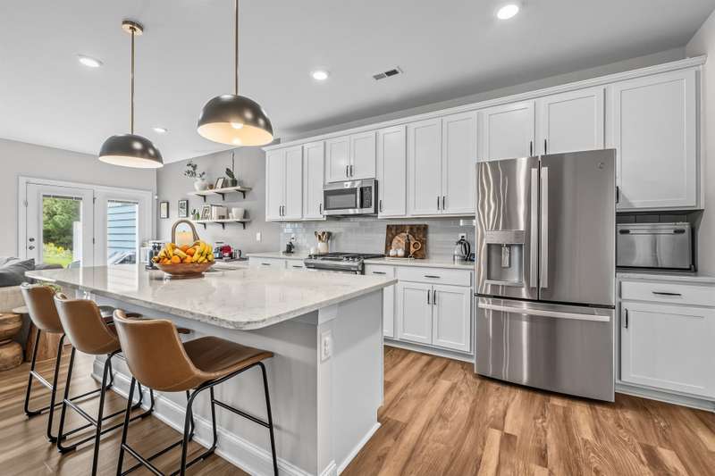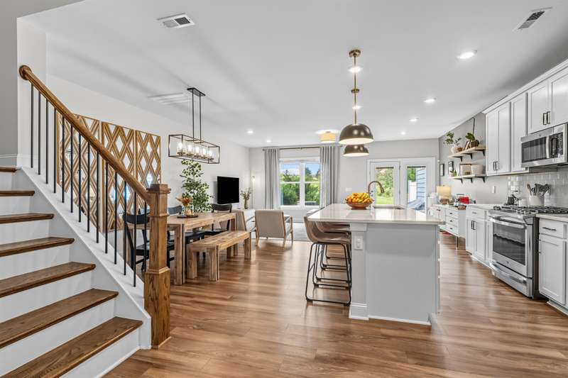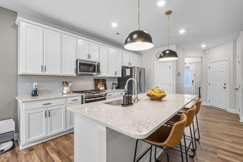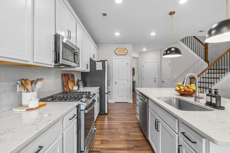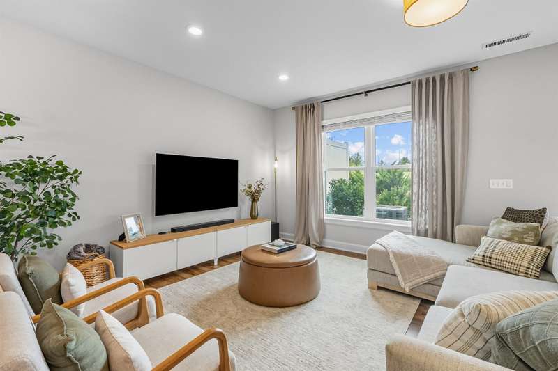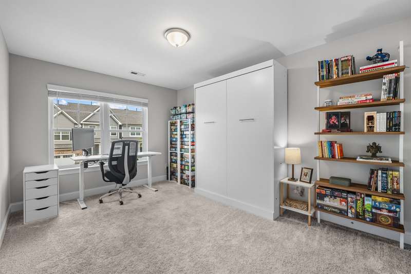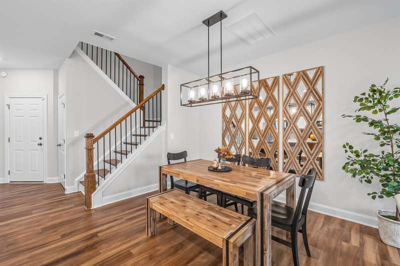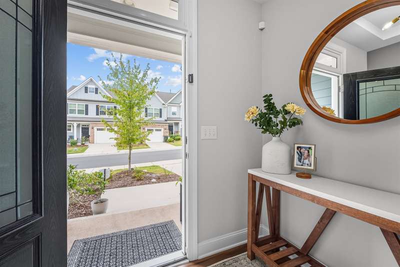 Modern, Move-In Ready Townhome with Smart Upgrades in Southwest DurhamThis elegant 3-bedroom, 2.5-bath townhome blends modern design, an open floor plan, and thoughtful upgrades in a prime 27713 location near RTP, Duke, and Southpoint. A spacious family room flows seamlessly into the dining area and gourmet kitchen featuring quartz countertops, stainless steel appliances, a walk-in pantry, and a generous island, perfect for everyday living or entertaining.Upstairs, a versatile loft with custom built-ins adds flexible space and effortless organization, ideal for a home office or media area. The serene owner's suite includes an upgraded walk-in closet system and a spa-inspired bath with dual vanities and a tiled walk-in shower. Two additional bedrooms, a full bath, and a redesigned laundry room with cabinetry and shelving enhance comfort and convenience.Step outside to your private backyard patio overlooking an open field, with no houses behind you, creating a peaceful retreat filled with natural light. HOA-maintained exterior features provide low-maintenance living while keeping your home's appearance pristine. The community offers a playground and dog park, with easy access to the American Tobacco Trail for walking, running, or cycling.Beautifully maintained and, designed for comfort and style, this home captures the best of modern Durham living.