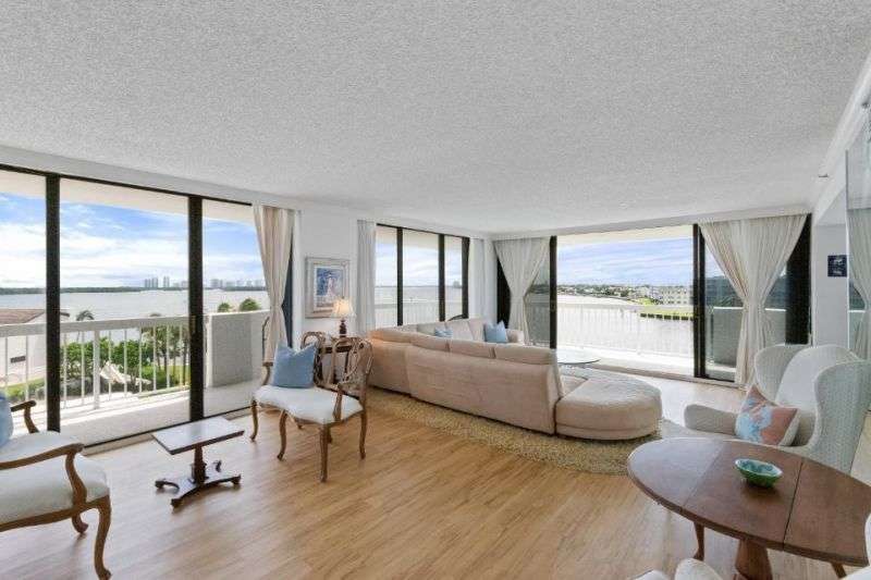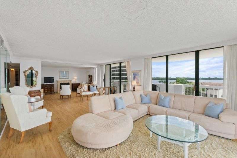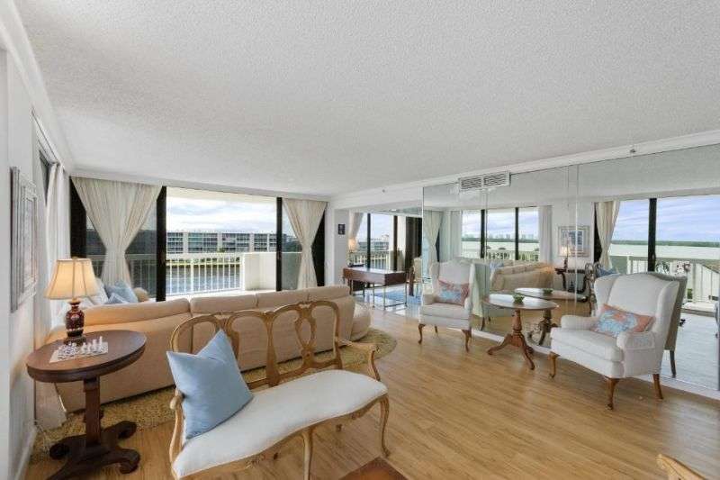 Southeast unobstructed Waterfront Views from every room in this very spacious 3 bedroom and 2.5 bath condo with wrap-around balcony. The location cannot be beat. For the buyer that does not want to be too high up, but high enough to get spectacular views. See the boats going by all day long. Enjoy sunrises and sunsets from your sunny balcony. This building is in good financial shape. Enjoy Belles waterfront restaurant, 2 mile waterfront walking path and 24 hour manned gatehouse. Great shopping & restaurants nearby. Jack Nicklaus Signature Golf and Tennis across the street. 5 minutes to the beach. Everything is here and 20 minutes to the Palm Beach International Airport. The third bedroom was opened up to the living room, but could be put back easily.