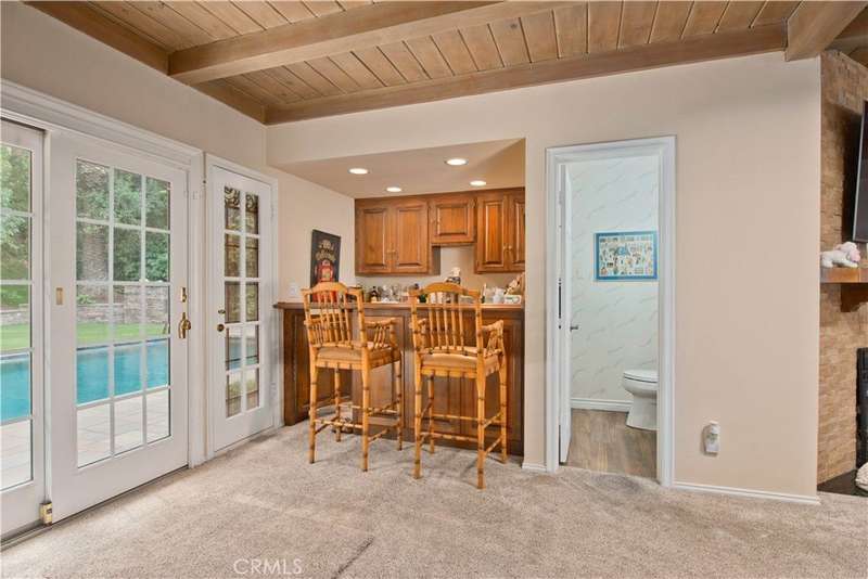 Welcome to this elegant single-level residence, ideally situated South of the Boulevard in one of Encino’s most sought-after locations. Set above the street for added privacy and curb appeal, this home offers an exceptional layout designed for both comfort and entertaining. Step through the formal entry into a grand living room anchored by its central fireplace, flowing seamlessly into the expansive formal dining area—perfect for gatherings and celebrations. Enjoy a culinary experience in the updated contemporary kitchen, complete with custom cabinetry, stainless steel appliances, granite countertops, and a sunlit breakfast area. The warm and inviting family room is enhanced by rich wood-beamed ceilings, cozy fireplace, classic built-in bar, and a versatile office retreat—ideal for working from home or unwinding with family. Outfitted with three generously sized bedrooms, including a sprawling primary suite with a sitting area, dual closets (walk-in and wardrobe), dressing area, and a luxurious spa-inspired bath showcasing a freestanding soaking tub, seamless glass two-person shower, and private commode room. Step outside to enjoy an ultra-private backyard oasis, featuring expansive open and covered patio areas, updated pavers, stacked stone accents, and a true swimmer’s pool surrounded by lush mature landscaping—creating the perfect space for relaxation and entertaining. Located just moments from Lanai Road Elementary School, along with convenient Westside access. Dont miss your opportunity to call this exceptional Encino residence home!