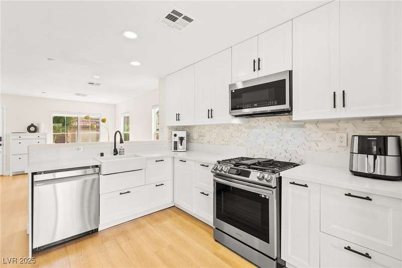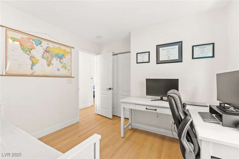 Step into luxury with this beautifully upgraded Henderson home, fully renovated with top-of-the-line finishes. The open layout showcases premium wood-like flooring throughout and an abundance of natural light. No expenses were spared in the chef’s kitchen featuring sleek upgraded appliances, stunning marble countertops and new custom cabinetry. Upstairs, a versatile loft easily converts into a 3rd bedroom. Retreat to the spacious primary suite with a private balcony and take in breathtaking surrounding mountain views. Relax outdoors with low-maintenance desert landscaping and a spacious rear yard. Nestled in a gated community offering sparkling pools, scenic walking trails, and parks—all just minutes from shopping, dining, and freeway access. The perfect opportunity for families and investors- schedule your tour today!