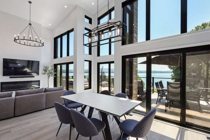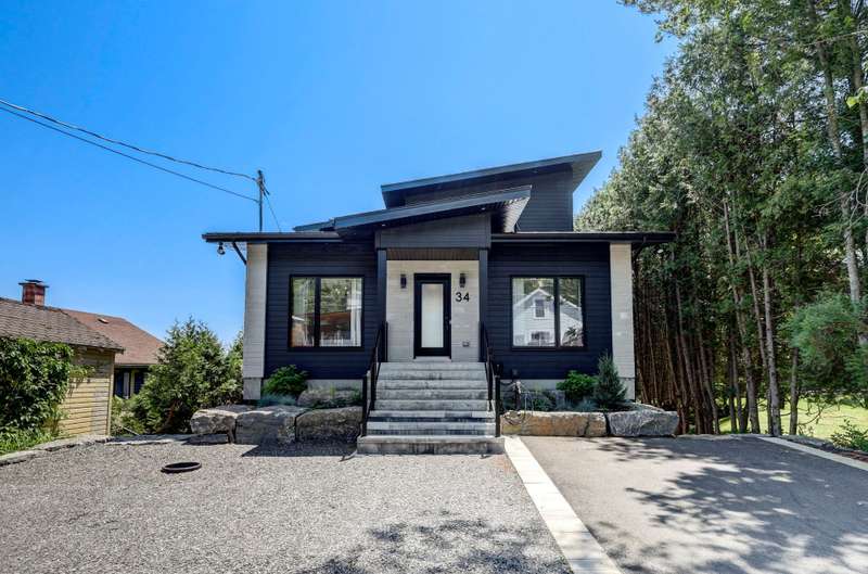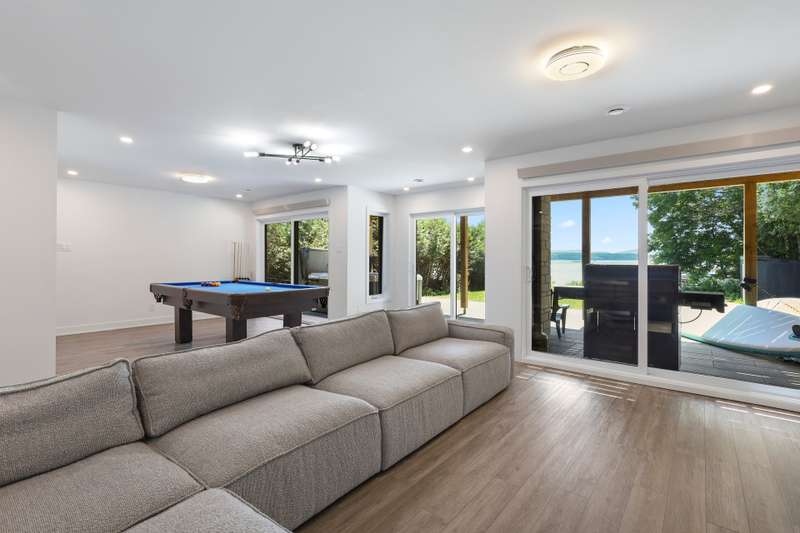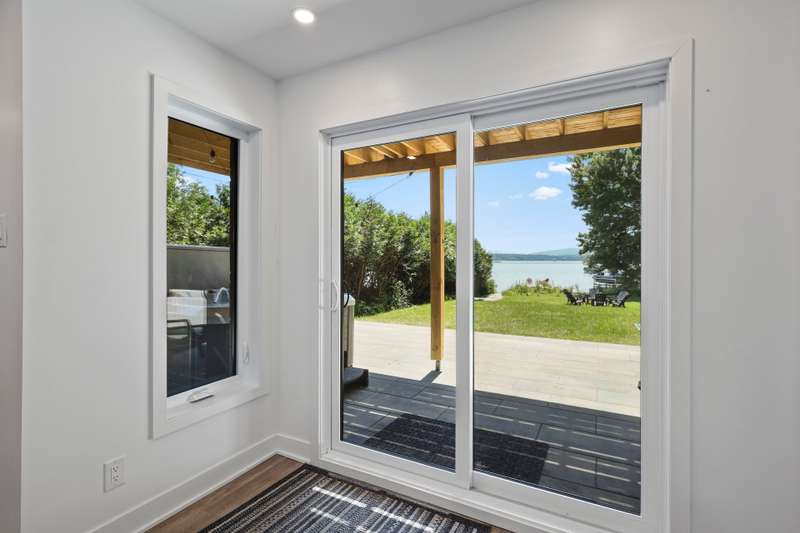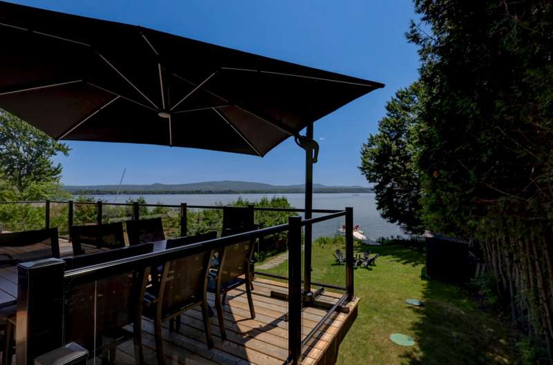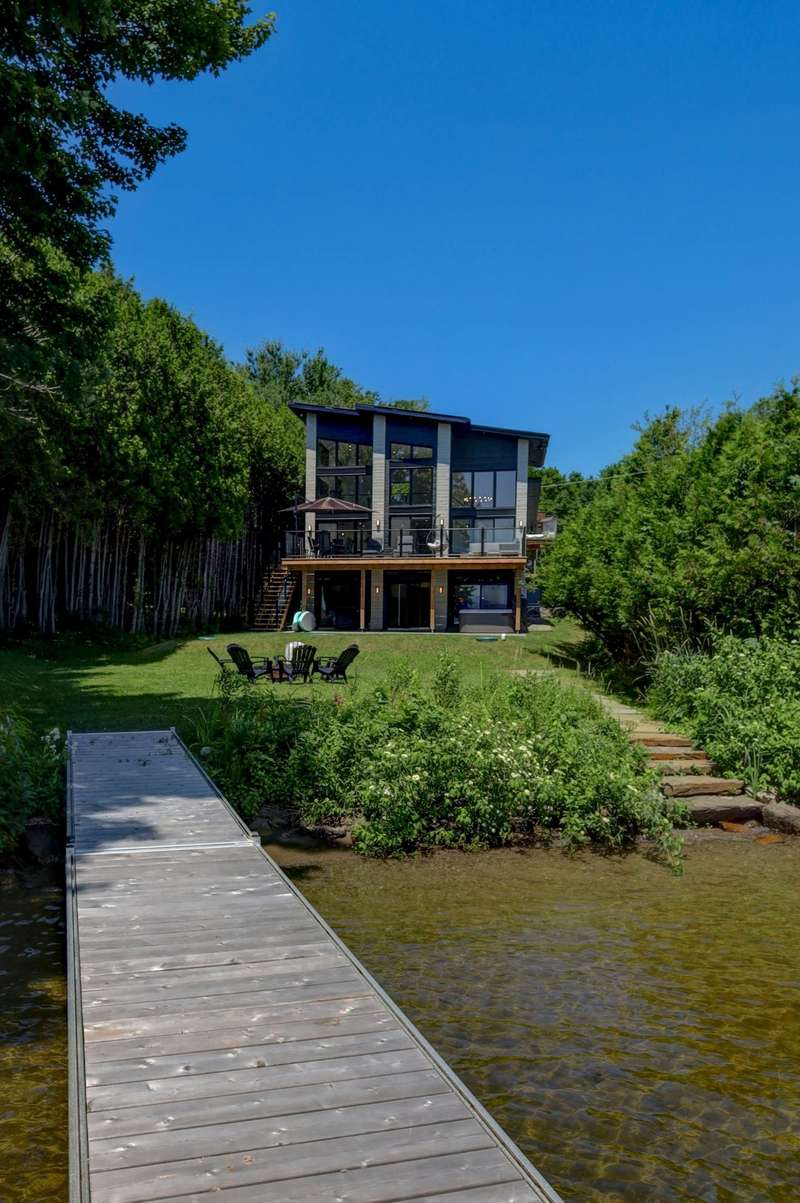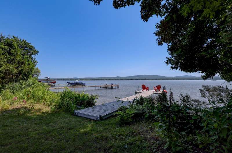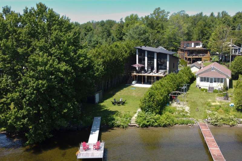 Welcome to 34 Chemin de la Baie Rock Island, Lake Brome. Nestled in one of the lake's most sought-after areas, this property offers four bedrooms, two bathrooms, and a spacious mezzanine. Perfect for water sports enthusiasts with its direct lake access and walk-out garden level, it boasts expansive windows that flood the interior with natural light. Enjoy the serene panoramic view of the water from the balcony, in every season and the safeness of a cul-de-sac.