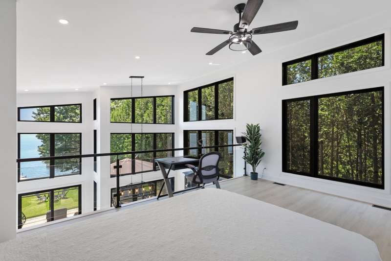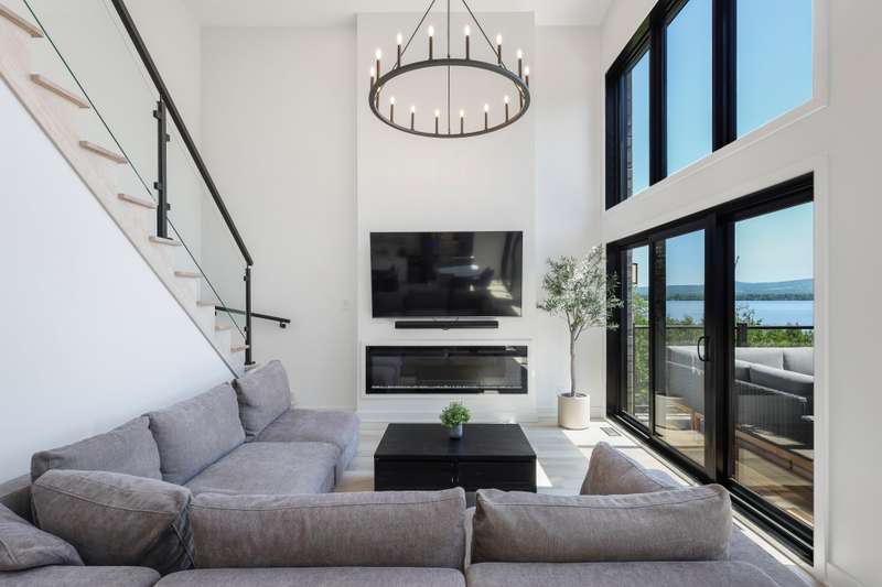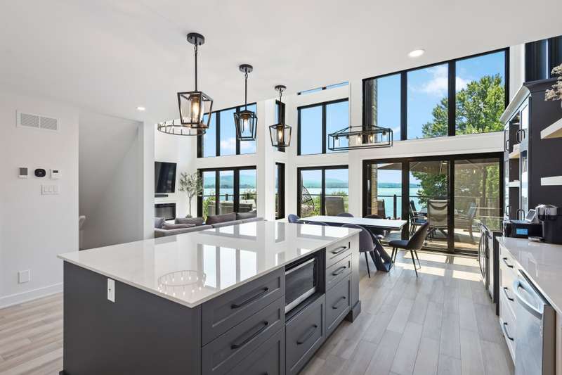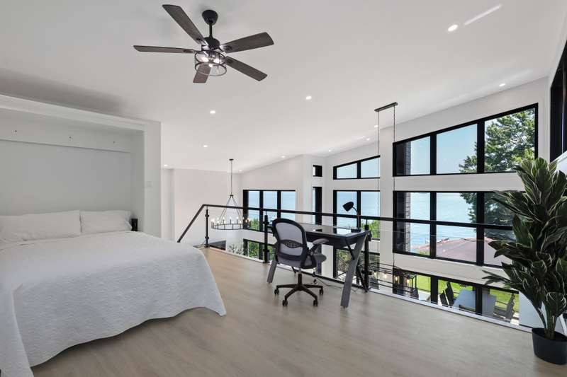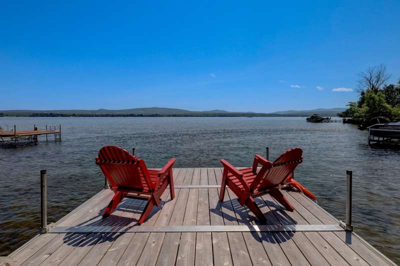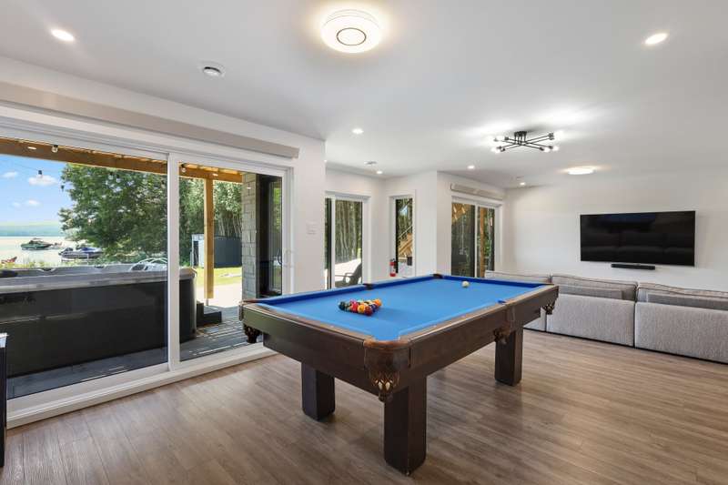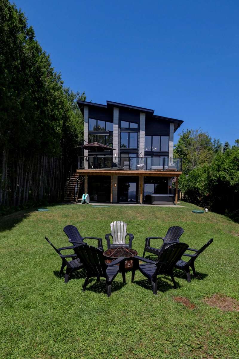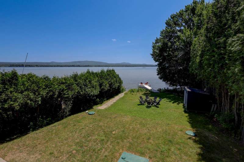 Welcome to 34 Chemin de la Baie Rock Island, Lake Brome. Nestled in one of the lake's most sought-after areas, this property offers four bedrooms, two bathrooms, and a spacious mezzanine. Perfect for water sports enthusiasts with its direct lake access and walk-out garden level, it boasts expansive windows that flood the interior with natural light. Enjoy the serene panoramic view of the water from the balcony, in every season and the safeness of a cul-de-sac.