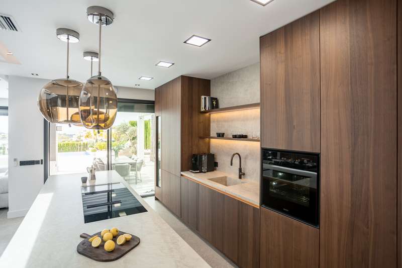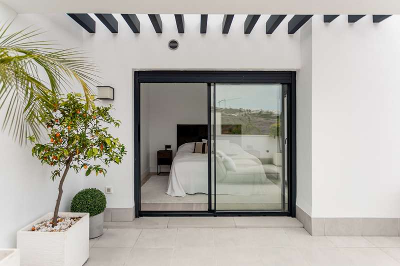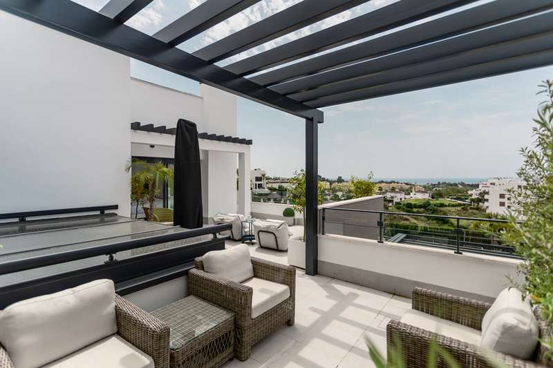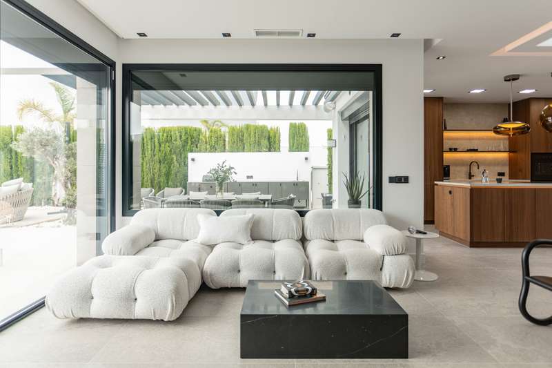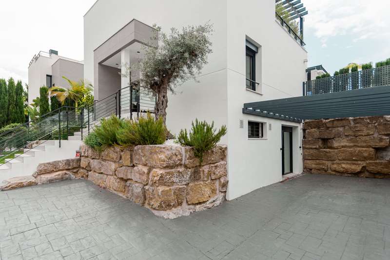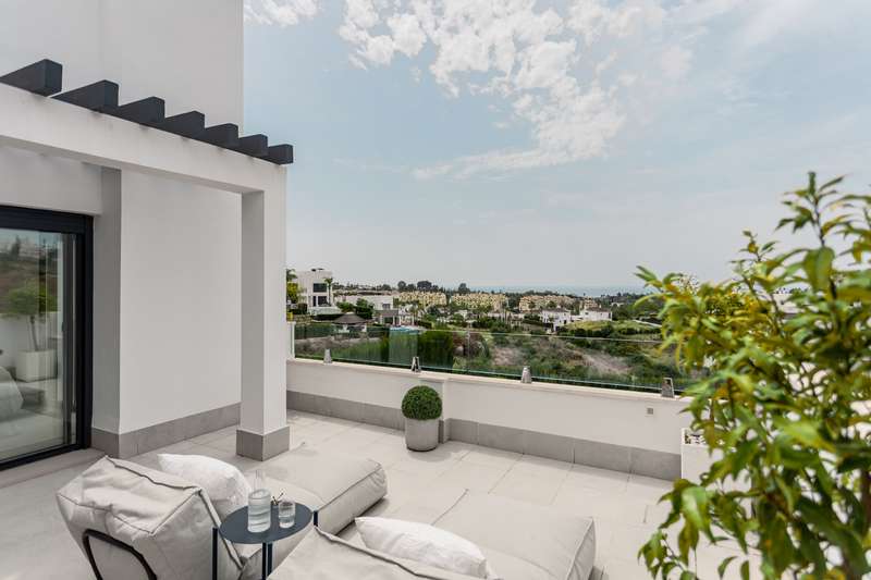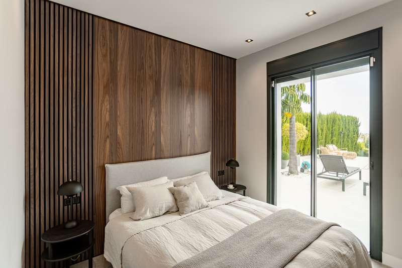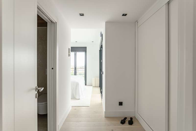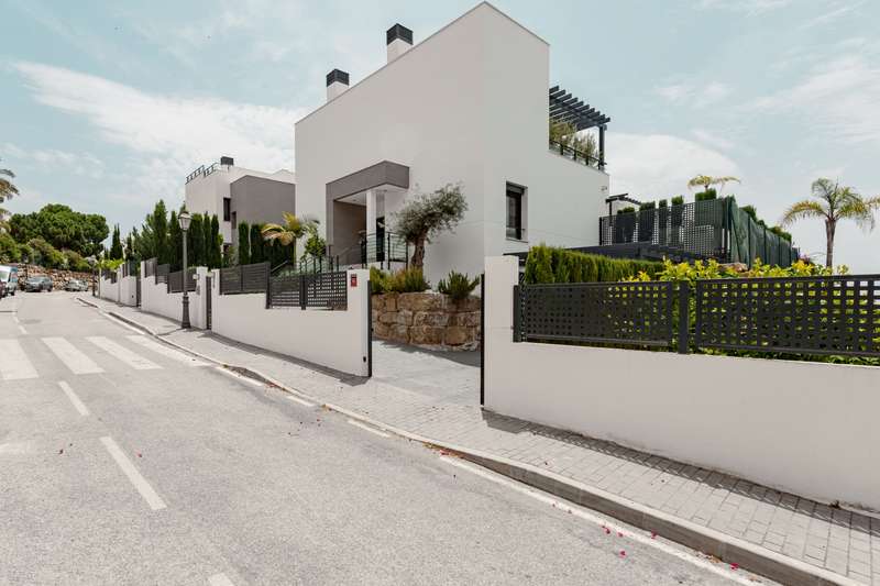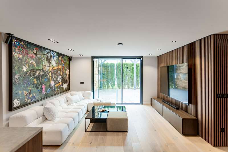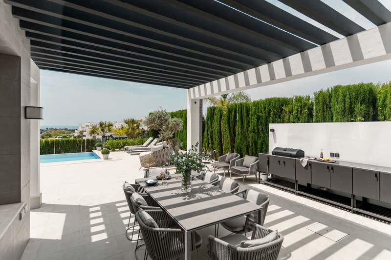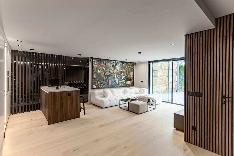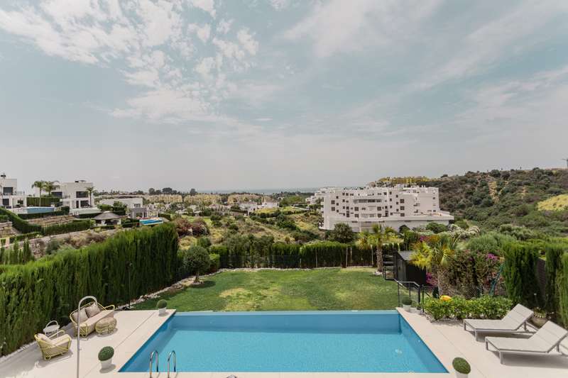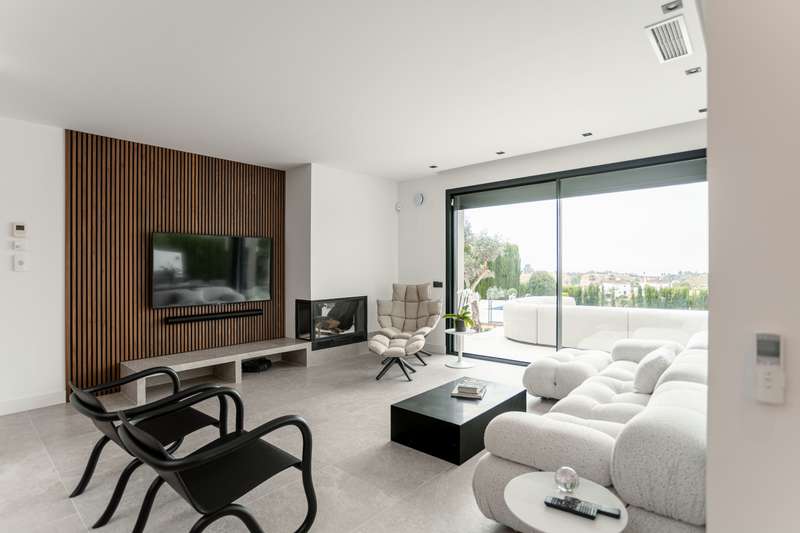 Located in the exclusive and secure community of Resina Golf in Estepona, this fully renovated villa offers an exceptional standard of luxury living. With meticulous attention to detail and high-end finishes throughout, the property combines contemporary design with functionality and comfort in one of the Costa del Sol’s most sought-after residential areas. Set on a 765m² private plot, the villa offers generous interior and exterior spaces across three levels. On the main floor, you’ll find a top-of-the-line open-plan kitchen by Decodan, seamlessly connected to a spacious living area with a designer fireplace. Large integrated windows provide stunning, unobstructed views of the Mediterranean Sea from every angle. This main level also includes a complete en-suite bedroom with a private dressing area and a guest toilet. The outdoor terrace of 190m² is designed to maximize the villa’s privileged setting. It features a heated infinity pool, a fully equipped barbecue area, a shaded pergo