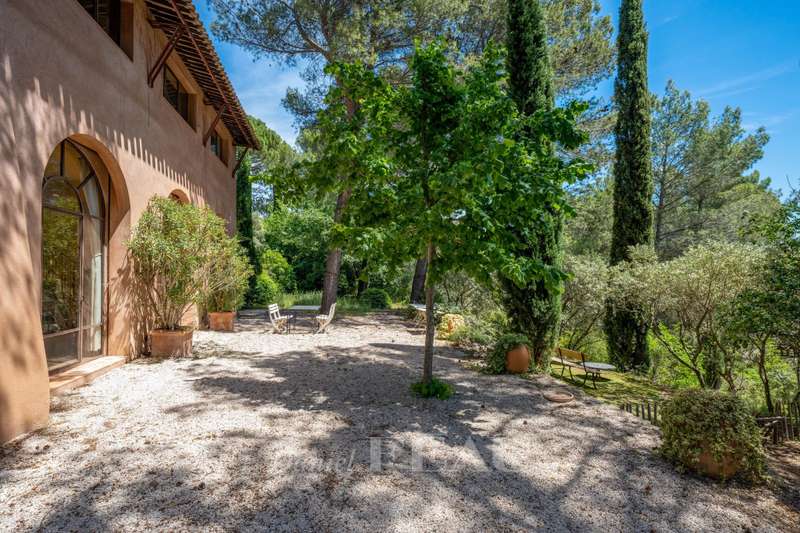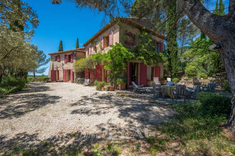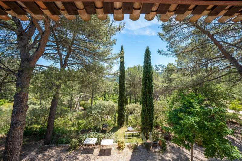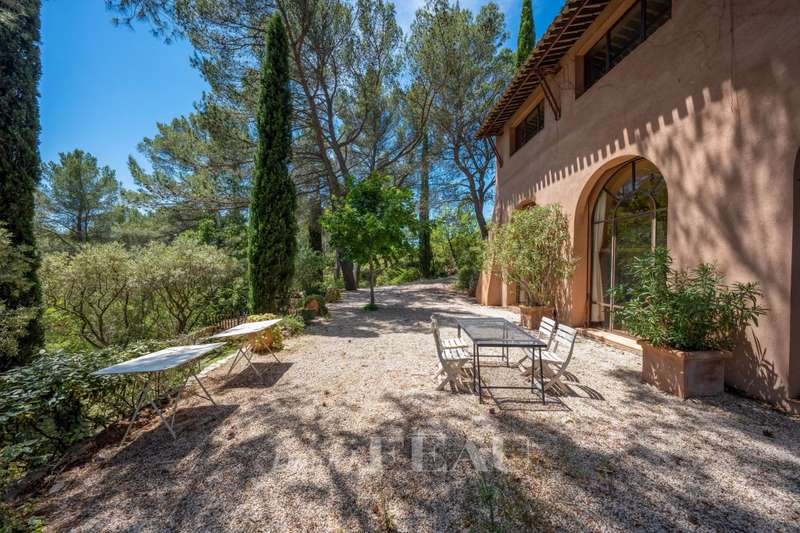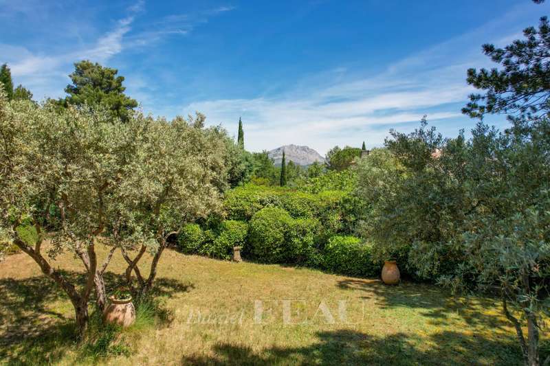 This property set in about 7000 sqm of landscaped grounds is located in sought-after le Tholonet, dear to Paul Cezanne. Benefiting from no facing neighbours and enjoying an open view of the iconic Sainte Victoire Mountain, it includes a 200 sqm main house with a spacious living/reception room with a fireplace opening onto a terrace, a dining room, a separate kitchen, a pantry, and access to the basement garage. Upstairs are three bedrooms, two shower rooms, a study and a boudoir. Ample fitted storage space. With a swimming pool. A bright 103 sqm guest house includes a living room with a fireplace, an open-plan kitchen, a bedroom and a shower room. Upstairs are a mezzanine with a study area, a bedroom with a shower room, a second bedroom and a second study area benefiting from independent access. A stone staircase accesses the main house. An elegant property in a residential neighbourhood near the shops.