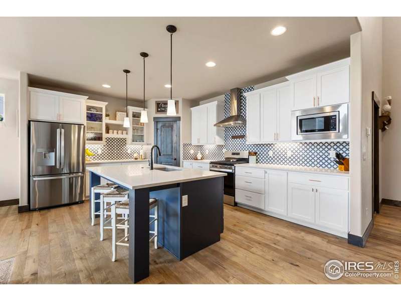 **Must See In Person** Semi-Custom Home by Bridgewater, Custom Tharp Cabinets, Solid Hickory wood flooring, Main level primary bedroom & bath, 2nd bedroom on the main level/office, Open floor plan w/vaulted ceilings, custom designed island, Gourmet Kitchen w/ 5-burner gas range, walk-in pantry, Fenced yard, professional landscaping, patio & pergola, Unfinished Garden Level Basement, Oversized 3-car garage w/ 9-ft door on one side, Close distance to parks & new school, neighborhood pool & golf course along w/winter sledding & skiing, multiple onsite restaurant, & orchards throughout the neighborhood.