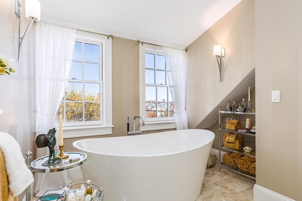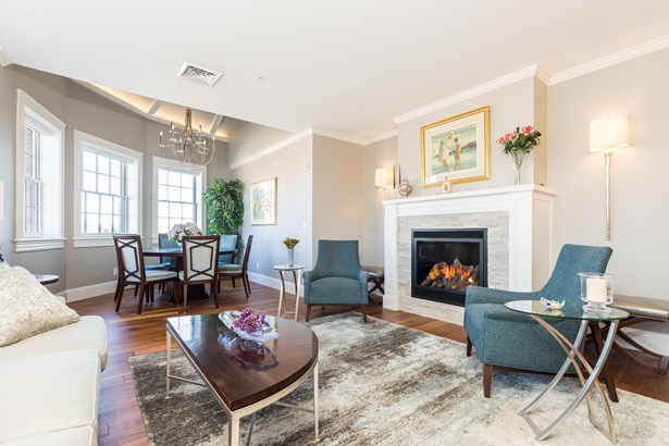 Exceptional offering in the acclaimed City of Portsmouth, NH, one of the most desirable locations in the mid-coast region of New England. The uniquely oriented design of both the unit and building combine to afford expansive, multi-aspect views of the Market Square skyline, Prescott Park and The Piscataqua River. Secure off-street entry to the building's foyer and elevator provide convenient and discrete access to the residence. A private, nicely appointed sitting area offers additional space and utility at the main entry to the unit. This rare, multi-level penthouse was custom designed by the current owners and features exceptional quality materials, craftsmanship and design features throughout. The correctly proportioned floorplan and layout provide ample room sizes, an abundance of natural light, optimal utility and livability combining elements of traditional style with modern features and appointments. On the 1st level, the entry area flows to the kitchen with island and bar, family room, fireplaced living room and separate dining area. A bedroom with large en-suite bath, separate laundry room and a powder room complete the first level. A curved stairway leads to the 2nd level which includes the primary bedroom suite, an additional bedroom with en-suite bath, a den and a separate office. A private balcony, 2 deeded garage parking spaces, fitness room and storage area are among the many amenities included. This property will appeal to the most discerning buyer.