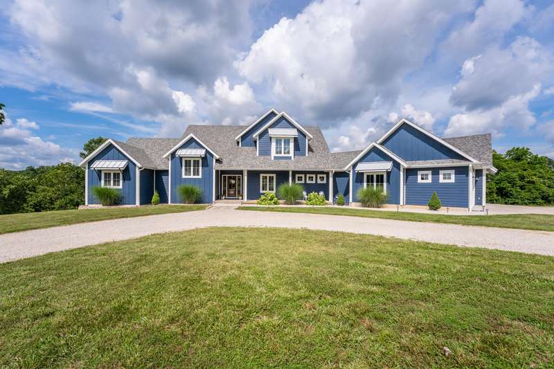 Once in a lifetime opportunity to own this Stunning 130 Acre Modern Farmhouse Estate. This unrestricted, secluded, scenic, and usable land just 1.5 miles from Bull Shoals Lake and 10 minutes to Lake Taneycomo. This property offers a mix of open pasture, valley views, wet-weather creek, and abundant wildlife. Fully fenced with a cattle watering system, ideal for livestock, recreation, or development.The custom-built Modern Farmhouse-style home features 4 beds, 3.5 baths, and premium finishes throughout. Highlights include multi-width '' hickory flooring, reclaimed hand-hewn oak beam accents, vaulted and shiplap ceilings, quartz countertops, and a wood-burning fireplace with blower. Chef's kitchen with custom cabinetry, induction cooktop, and professional-grade appliances. Spacious master suite with custom tile shower, soaker tub, and dual vanities.Additional features:* Public water, private septic, fiberoptic internet* Remote security gate with touchpad* Walk-in pantry & laundry room* Above-ground pool with grilling porch and walkout basement* 2 HVAC systems (one dual fuel w/ propane backup)* 2 concrete storm shelters with steel doors* Wet bar, jack & jill bath upstairs, large basement storage room* 3-car garage with attic storage* Raised garden beds, fruit trees, thornless blackberries* 2 frost-resistant hydrants**36' x 54' shop building includes:*** 2 oversized parking bays* Attached 12'x36' parking pad* Apartment with full kitchen, bathroom, washer/dryer, and mini-split HVAC* Fire-rated sheetrock between apartment and shop* Covered porchJust 25 minutes to Branson. Suitable for horses, cattle, or future development. Shown by appointment only to pre-qualified buyers. All Measurements Are Approx. All information is deemed to be reliable, but Buyer and Buyers Agent please do own Due Diligence on Rules and Regulations and other matters.