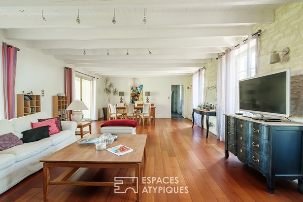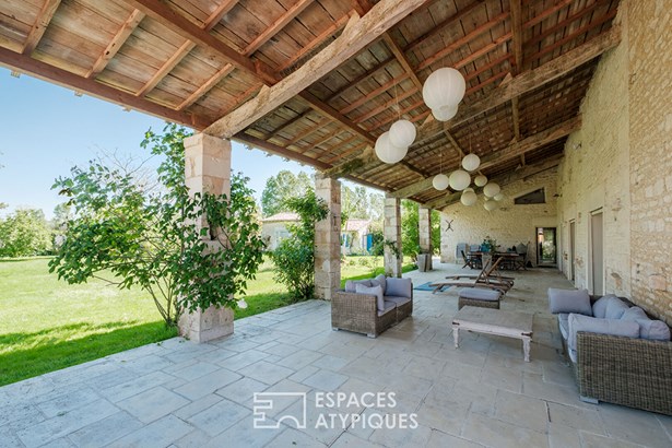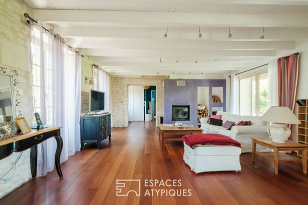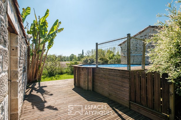 Located in the commune of Coulon, the tourist epicenter of the marsh, this rare property is spread over an area of approximately 2,400 m2 of land, with a swimming pool and convivial spaces designed to accommodate families or visiting guests. The main house, characteristic of the local architecture with its stone facade and exposed beams, offers approximately 280 m2 of living space.