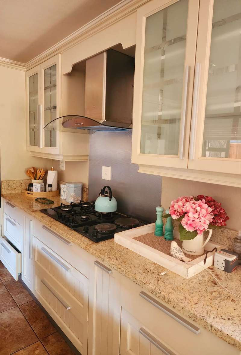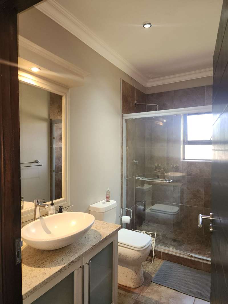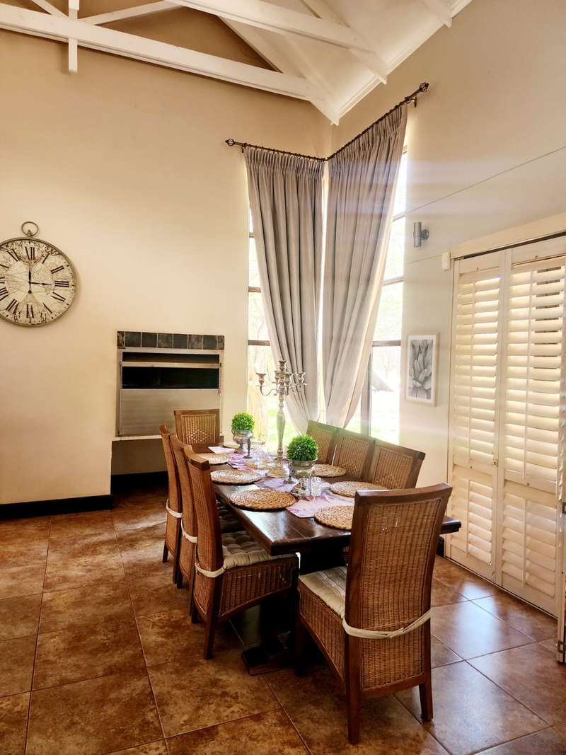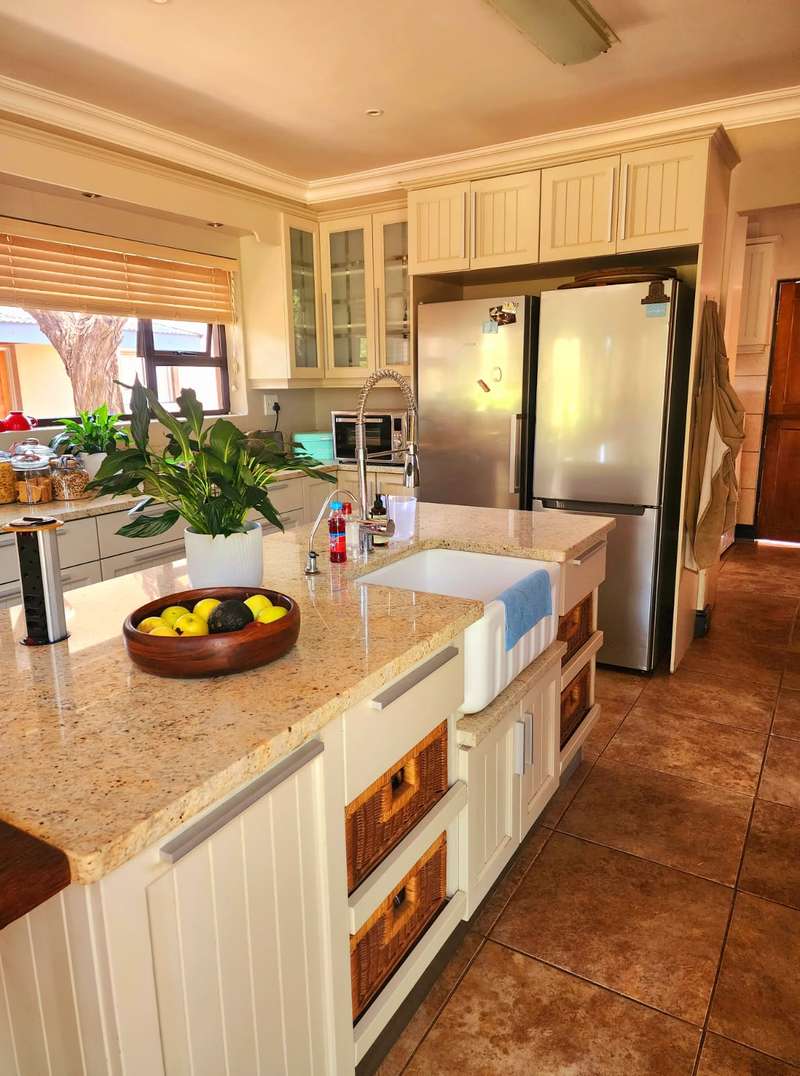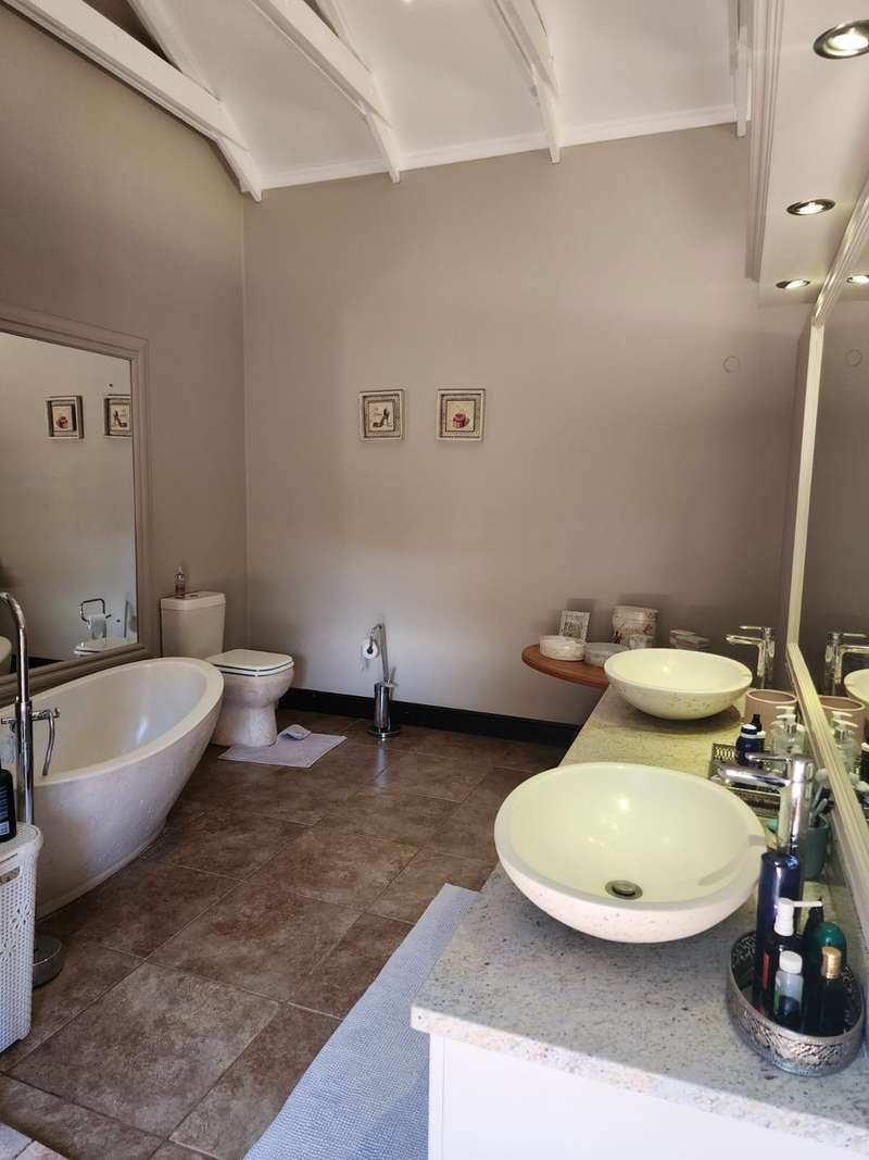 If money could buy you happiness and peace, this property resembles it. Kalahari sunsets, Camel-thorn trees and South Africa's antelope species will surround you and bring harmony to your doorstep. This property is situated in not only one of SA's most beautiful golf estates but also in a high demand area making it a profitable investment. One entering you will experience a warm at home feeling, but with its striking luxury aspects you will know this is not just an ordinary home. An open plan, modern high ceilings, modern kitchen and built i wine cabinets sets it above the rest. It has a gas hob, solar power, 4 on-suite bedrooms and a separate toilet for guests and a study. You can either entertain your guests inside out outside wit a barbeque while swimming in a sky blue swimming pool . It is an investment, and can easily run as a guesthouse wit a separate flat also apart of this multi opportunity peace of heaven. While some can only dream, you can live it. Just move in, its already furnished!