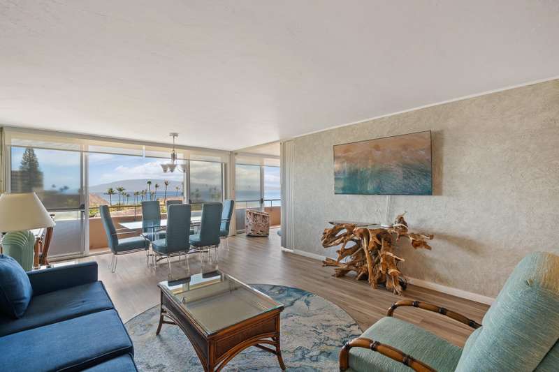 A rare opportunity awaits with this top-floor 1-bedroom, 1-bathroom penthouse residence in the highly sought-after Aloha Tower at Maui Kaanapali Villas Resort. Situated on the 6th floor, this south-facing unit offers commanding panoramic views of the Pacific Ocean and the island of Lana‘i, setting the stage for unforgettable sunsets and island serenity. Featuring a spacious 920 sq ft of thoughtfully designed living space, the home boasts an open-concept floor plan that feels bright, airy, and expansive. Large sliding glass doors flood the interior with natural light, while island-inspired furnishings, stylish fixtures, ample closet, storage space and a Rare In-Unit Washer & Dryer – add both elegance and function. Located on 11 lush beachfront acres, Maui Kaanapali Villas offers a suite of resort-style amenities including two swimming pools, a beachfront restaurant, hot tubs, BBQ areas, a fitness center, community laundry and direct access to a nearly mile-long stretch of golden sand. Black Rock, one of Maui’s most iconic landmarks, is just a short walk down the shoreline. Whether you're seeking a full-time residence, vacation retreat, or a premium investment, this Aloha Tower penthouse offers an exceptional combination of luxury, location, and lifestyle. Your dream of owning in Kaanapali begins here—schedule your private showing today. The subject property, has been operated as a short-term vacation rental during the Seller’s period of ownership. The unit has participated in a rental program and has been rented to transient guests in accordance with the practices and policies in effect at the time. The Seller makes no representations or guarantees regarding the future eligibility or permissibility of short-term vacation rental use at this property. Buyer is advised to conduct their own independent due diligence with Maui County and any relevant governing bodies to confirm the current and future zoning, permitting, or use restrictions related to transient vacation rentals (TVRs) at Maui Kaanapali Villas.