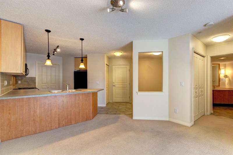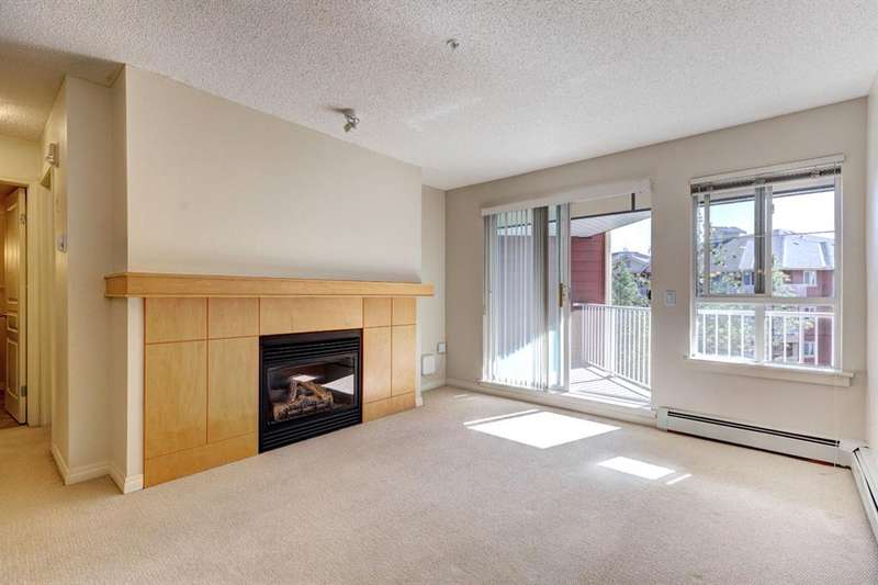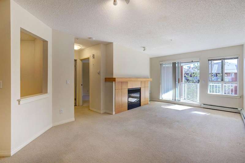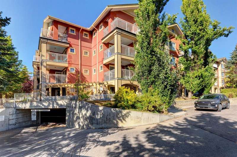 Fantastic location!!! Steps to Mount Royal University! This 1 bedroom plus den is perfect for students, first time homebuyers or investors. The large primary bedroom includes a walk in closet and a huge linen closet that provides extra storage. Enjoy a spacious 4pc bathroom, cozy gas fireplace and convenient in-suite laundry with newer stacked washer/dryer, the den is ideal for home office use or someone who just needs that extra bit of space. The large kitchen features a peninsula eat-up island, plenty of cupboards and counter space, this flows into the bright living area and out to the southeast facing deck. the large outdoor space overlooks the beautiful inner courtyard, ideal for morning coffee or host a little bbq with included gas line. This well priced unit also comes with titled heated and secured underground parking, an assigned storage locker, car wash, plus access to a well equipped gym and party room. This prime location is close to west hills shopping, trendy Marda Loop and North Glenmore Park or walking distance to coffee shop, restaurants, transit and other amenities! book your showing today!