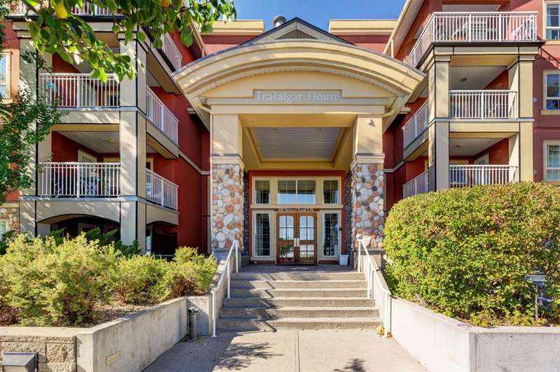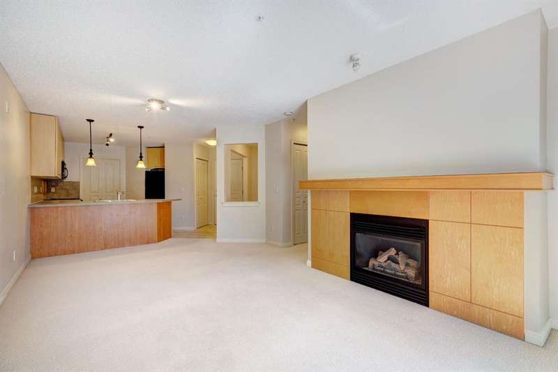 Fantastic location!!! Steps to Mount Royal University! This 1 bedroom plus den is perfect for students, first time homebuyers or investors. The large primary bedroom includes a walk in closet and a huge linen closet that provides extra storage. Enjoy a spacious 4pc bathroom, cozy gas fireplace and convenient in-suite laundry with newer stacked washer/dryer, the den is ideal for home office use or someone who just needs that extra bit of space. The large kitchen features a peninsula eat-up island, plenty of cupboards and counter space, this flows into the bright living area and out to the southeast facing deck. the large outdoor space overlooks the beautiful inner courtyard, ideal for morning coffee or host a little bbq with included gas line. This well priced unit also comes with titled heated and secured underground parking, an assigned storage locker, car wash, plus access to a well equipped gym and party room. This prime location is close to west hills shopping, trendy Marda Loop and North Glenmore Park or walking distance to coffee shop, restaurants, transit and other amenities! book your showing today!