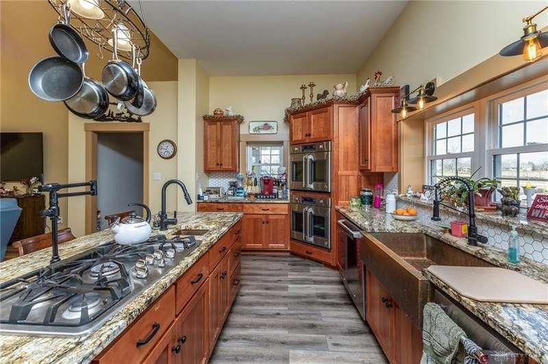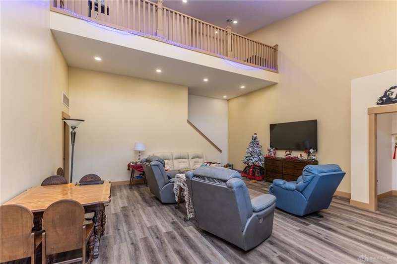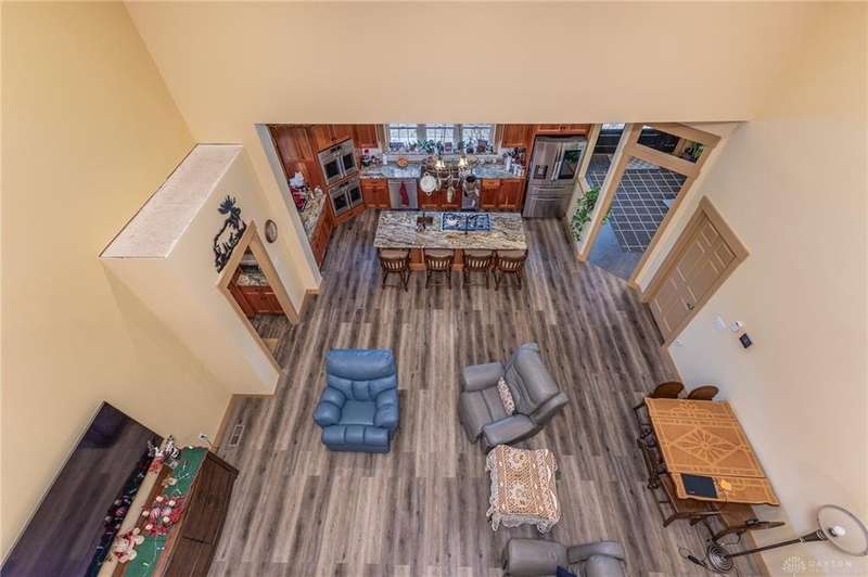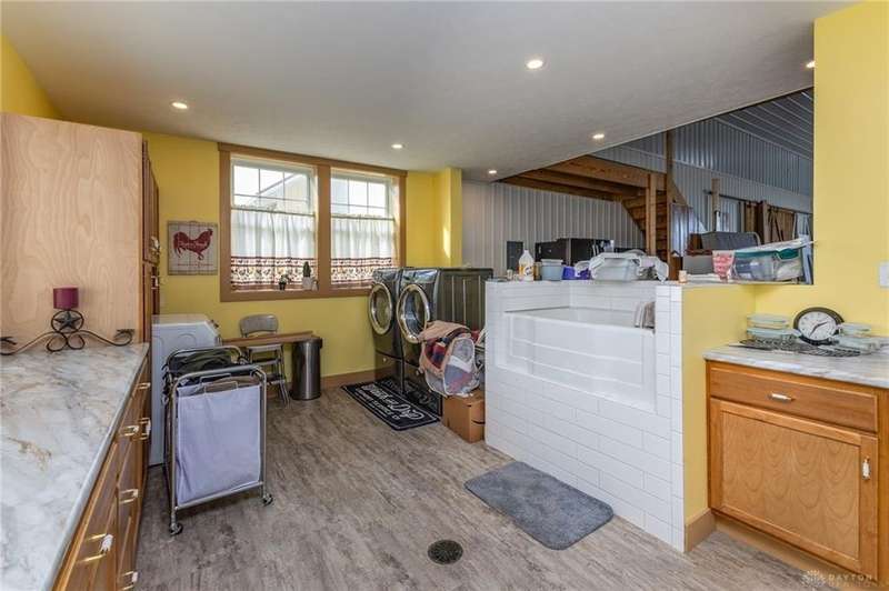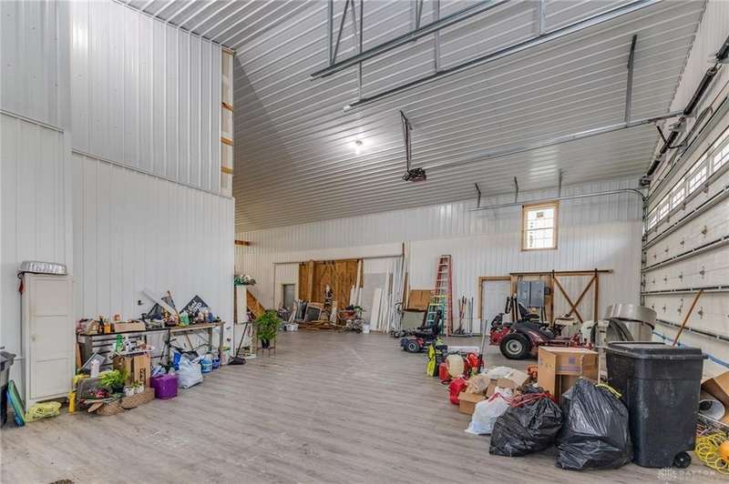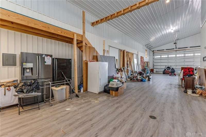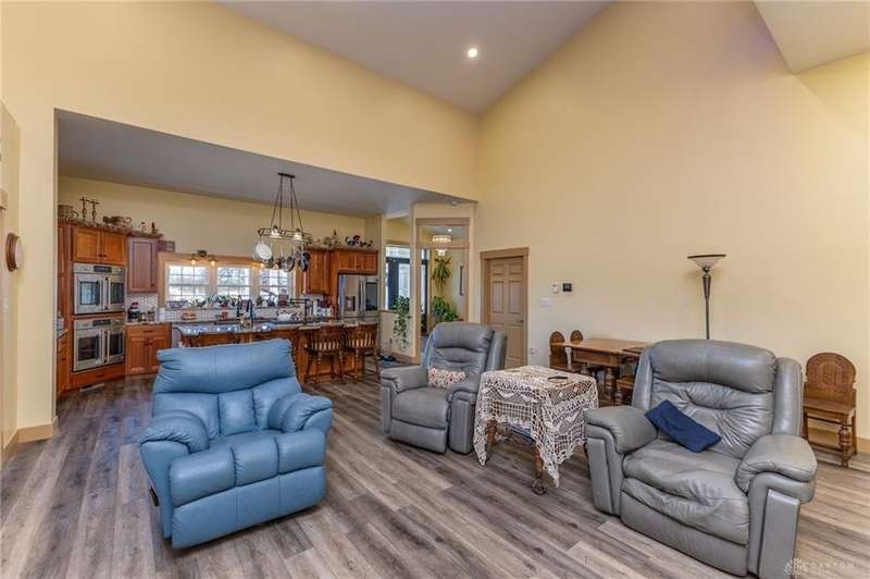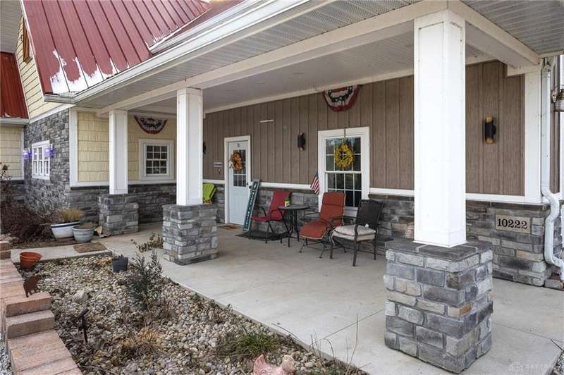 This unique custom-built home appears on the outside with its red standing seam roof as a barn but is a beautiful home along with an attached barn for permitted agricultural animals situated on 10.01 acres with R1-A zoning in Spring Creek Township just on the North side of Piqua. The Barndomium style home has an attached horse/animal barn measuring 51'x 28 and two cold storage areas measuring 21' x 11' which can be a tack room or simply storage. Now the home: the beautiful kitchen is open to the great room with a vaulted ceiling and heated wood flooring. The kitchen has cherry cabinets, granite counter tops, double oven, gas countertop stove, trash compactor and a unique hammered copper sink. The first-floor main bedroom with its large bathroom, walk in shower, double sink and soaking tub, and walk in closet plus a second bedroom with a full bathroom is on the first floor. On the second floor there are 3 partially unfinished dry-walled bedrooms and a finished full bathroom along with a balcony and office (21' x 10') overlooking the great room area. The oversized two side load garage doors measure 18'x14' and 24'x14' that can handle a motor coach and anything smaller. The house is heated by a gas fired boiler with water lines throughout the floors along with electric heat pumps for auxiliary heat and summer air conditioning. There is a lot to see and to enjoy as your country home and farm.