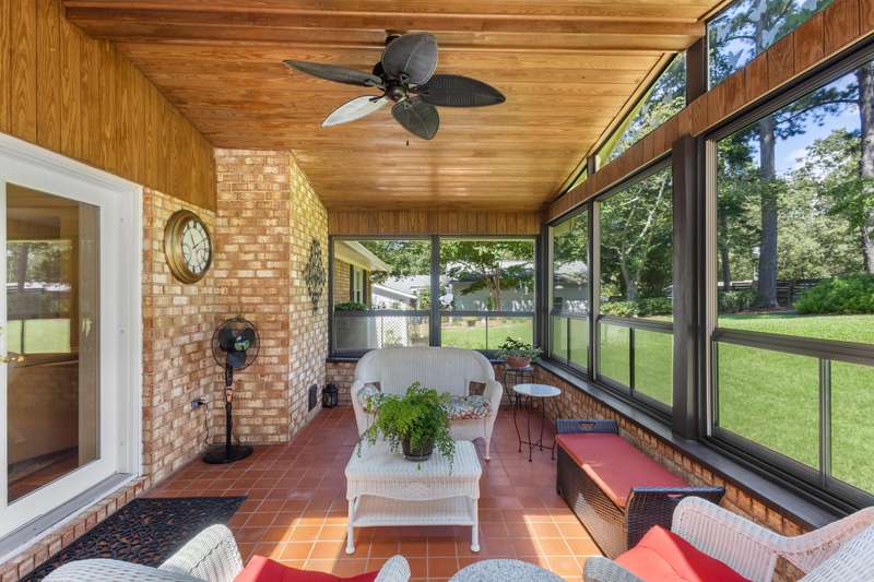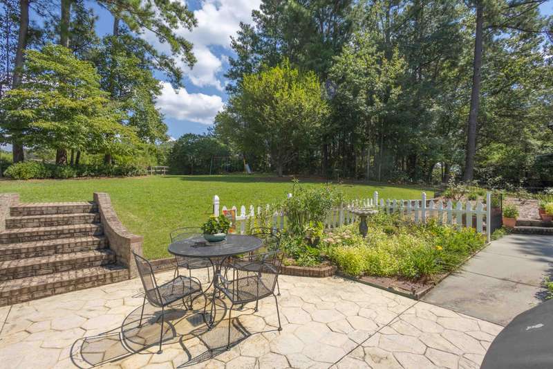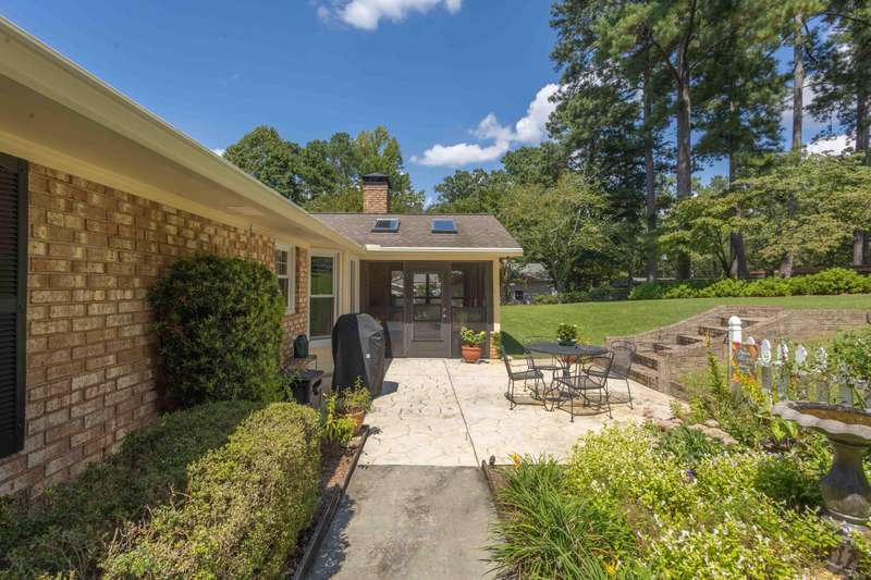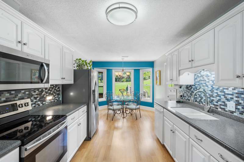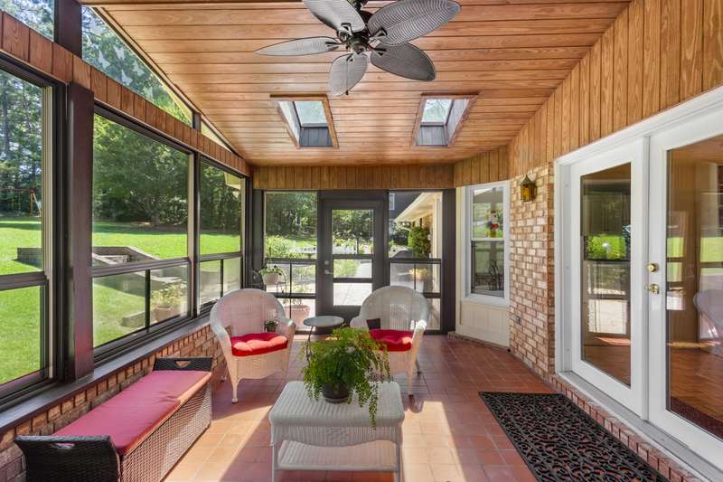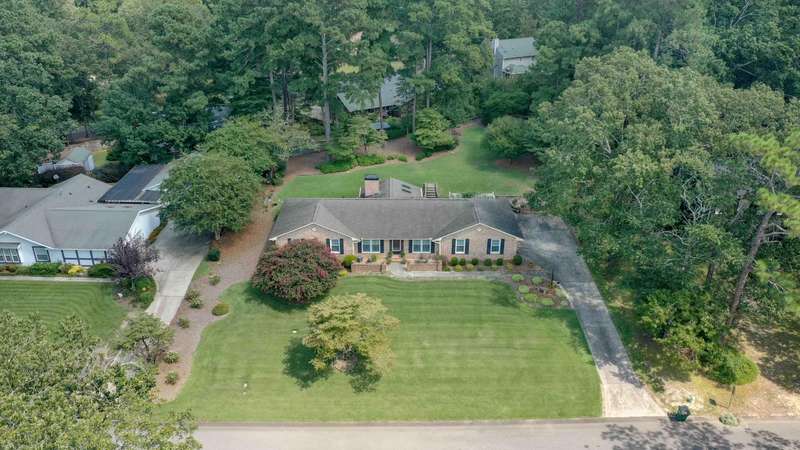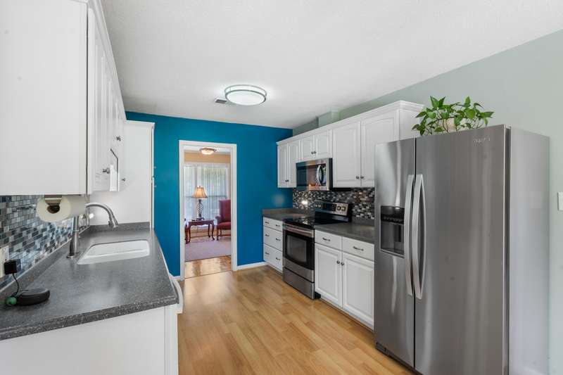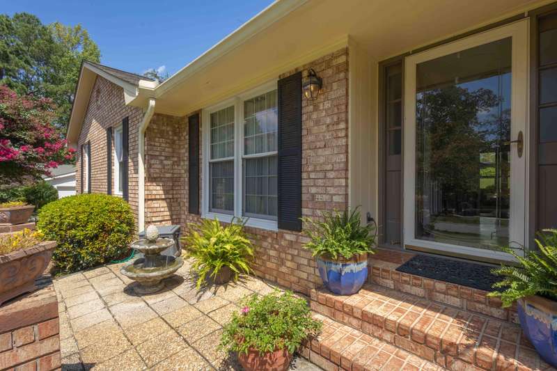 This inviting 4-bedroom, 3-bathroom brick ranch offers timeless appeal and modern comfort on over half an acre in the sought-after Houndslake community. From the moment you arrive, a welcoming front patio and beautifully manicured lawn set the tone for beautiful property. Step inside to a bright foyer that opens to a formal living room on one side and a formal dining room on the other, both filled with an abundance of natural light. The spacious main living area features a cozy brick fireplace and flows seamlessly into the kitchen, where you'll find stainless steel appliances, a striking statement backsplash, and a breakfast nook overlooking the backyard. The primary suite is a bright retreat with an en suite bathroom featuring a spacious vanity and shower. Additional bedrooms are generously sized, each offering easy access to a well-appointed bathroom with large vanity and tile shower. A highlight of the home is the sunroom, crafted in brick with a warm wood-paneled ceiling, where you can unwind while enjoying views of the private, wooded backyard. Outside, a patio provides the perfect spot for grilling, entertaining, or simply enjoying the serene setting. Situated on over half an acre, this home offers the option to join Houndslake Country Club, with access to tennis courts, clubhouse, swimming pool, and walking trails.