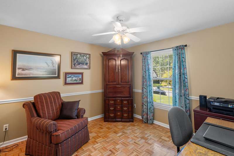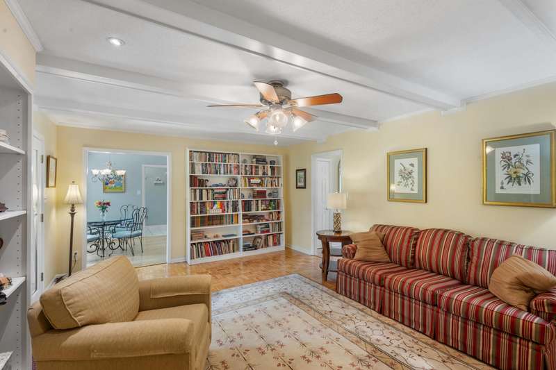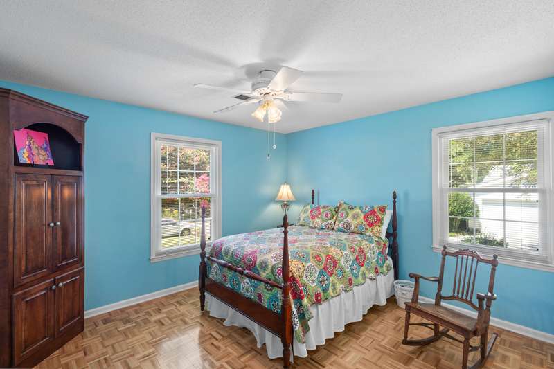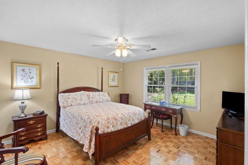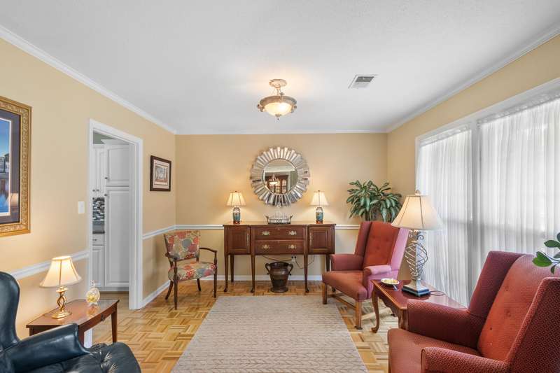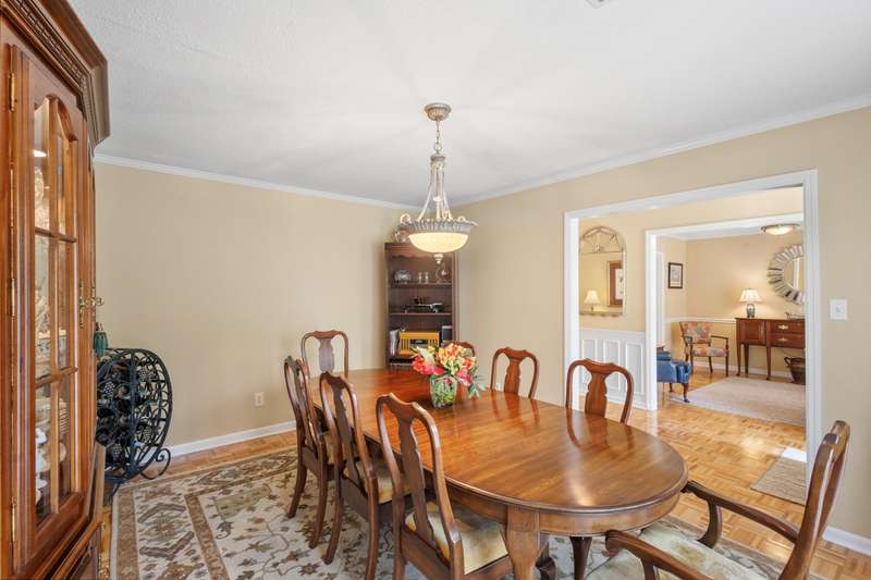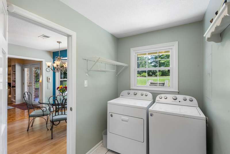 This inviting 4-bedroom, 3-bathroom brick ranch offers timeless appeal and modern comfort on over half an acre in the sought-after Houndslake community. From the moment you arrive, a welcoming front patio and beautifully manicured lawn set the tone for beautiful property. Step inside to a bright foyer that opens to a formal living room on one side and a formal dining room on the other, both filled with an abundance of natural light. The spacious main living area features a cozy brick fireplace and flows seamlessly into the kitchen, where you'll find stainless steel appliances, a striking statement backsplash, and a breakfast nook overlooking the backyard. The primary suite is a bright retreat with an en suite bathroom featuring a spacious vanity and shower. Additional bedrooms are generously sized, each offering easy access to a well-appointed bathroom with large vanity and tile shower. A highlight of the home is the sunroom, crafted in brick with a warm wood-paneled ceiling, where you can unwind while enjoying views of the private, wooded backyard. Outside, a patio provides the perfect spot for grilling, entertaining, or simply enjoying the serene setting. Situated on over half an acre, this home offers the option to join Houndslake Country Club, with access to tennis courts, clubhouse, swimming pool, and walking trails.