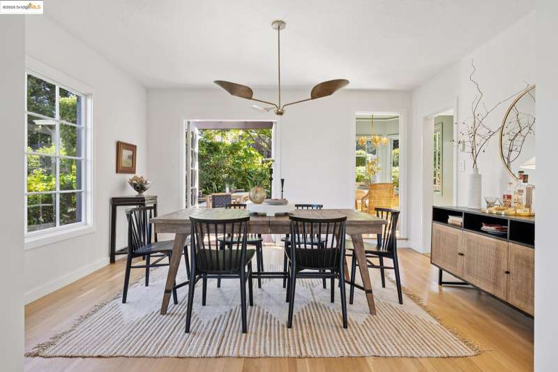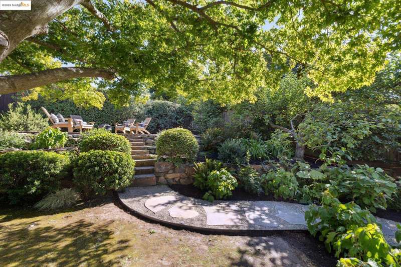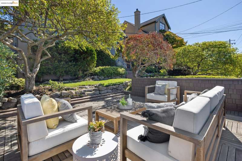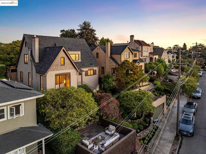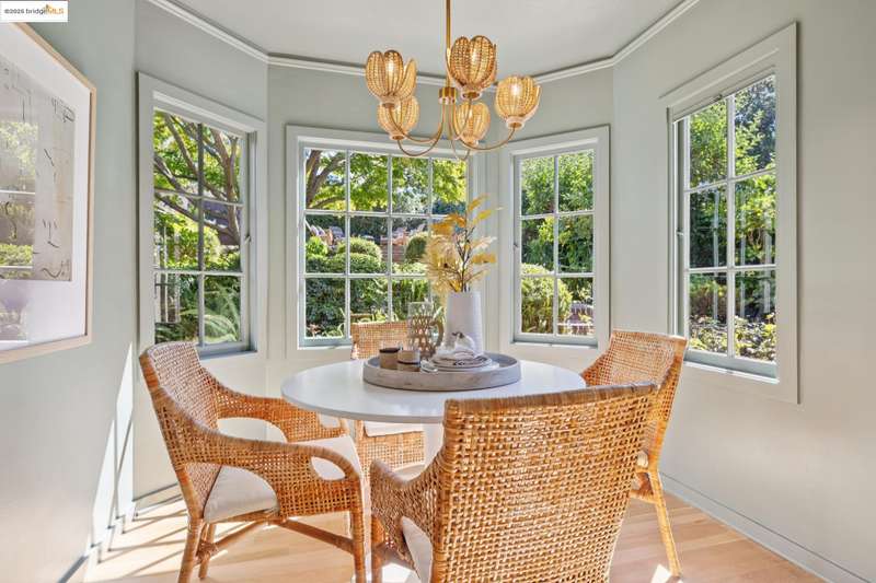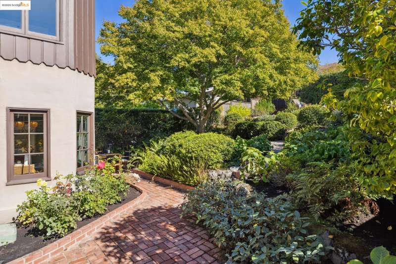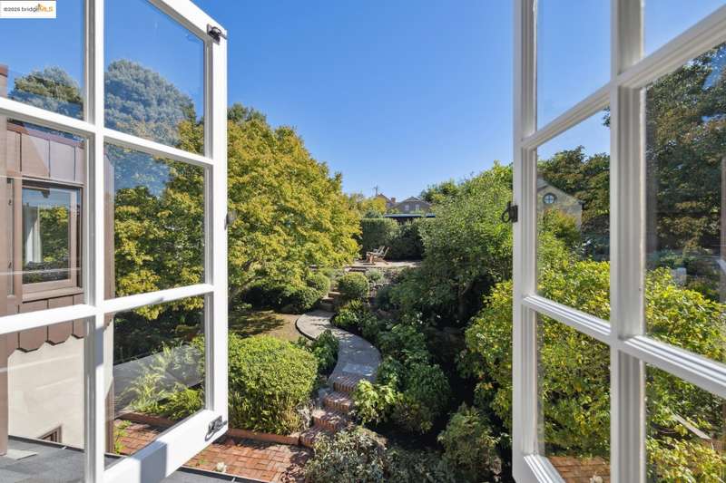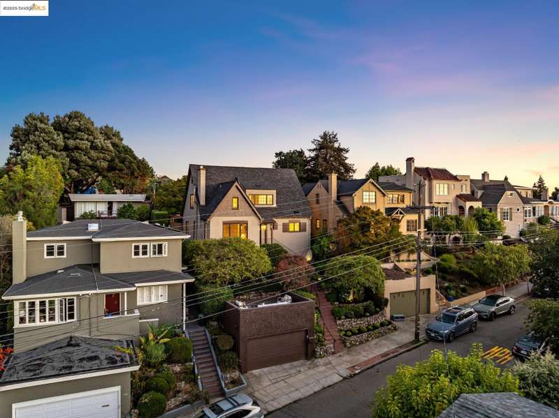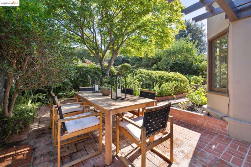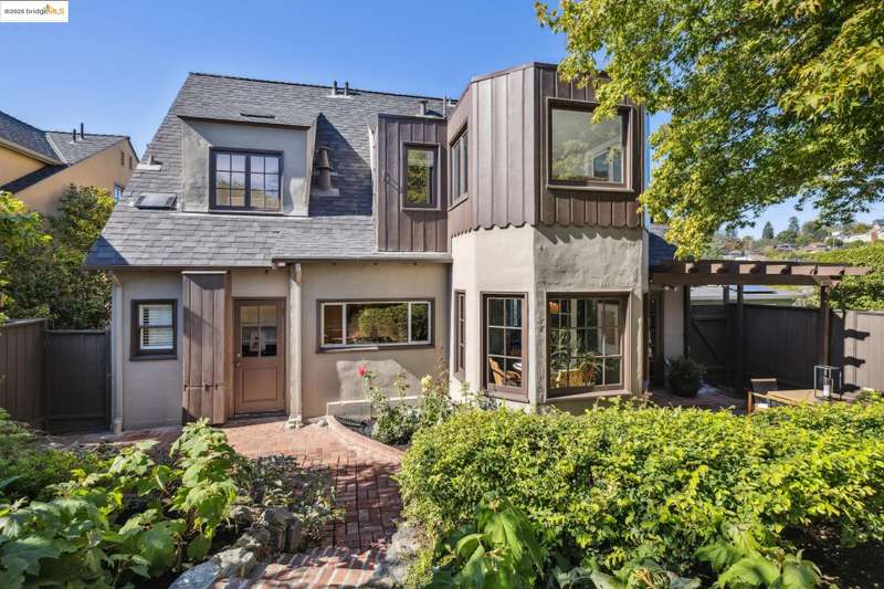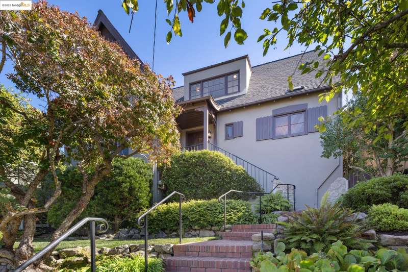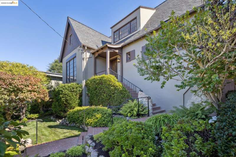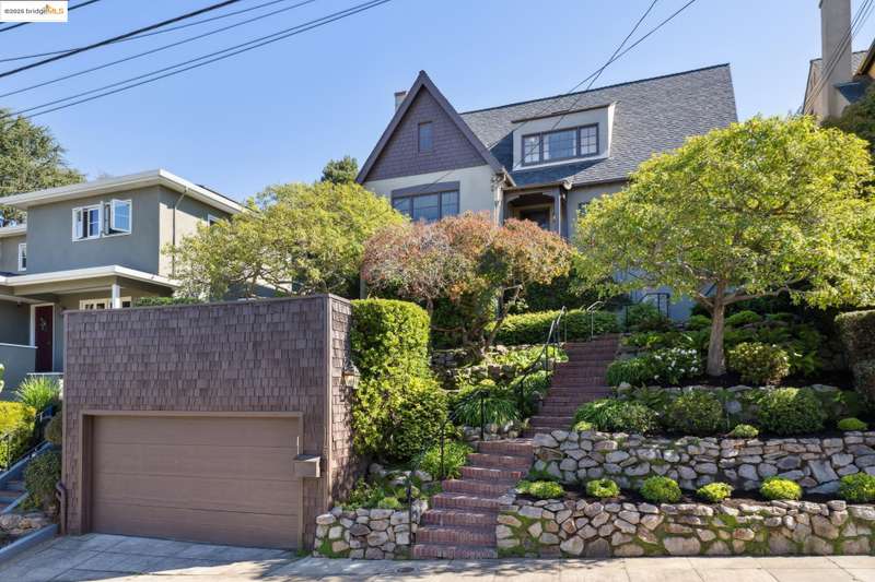 Ideally located close to schools and parks and surrounded by lovely gardens, this classic Piedmont Tudor blends timeless architectural details with exceptional livability. A gracious entry welcomes you, setting the tone for its elegance and warmth. Gleaming hardwood floors and abundant natural light define the living room, complete with floor to ceiling windows, while the spacious formal dining room opens through French doors to a brick patio, perfect for al fresco gatherings. The adjoining charming breakfast room and kitchen, featuring a six-burner range, combine functionality with inviting character. Upstairs, light-filled bedrooms overlook the landscaped gardens, where mature trees, a fruiting apple tree, and an upper patio create a serene private retreat. A sunny front deck offers yet another space to relax or entertain. With a convenient main-level en suite bedroom, ample basement storage, garage, and an unbeatable location near top-rated schools and parks, this home exemplifies Piedmont living at its finest.