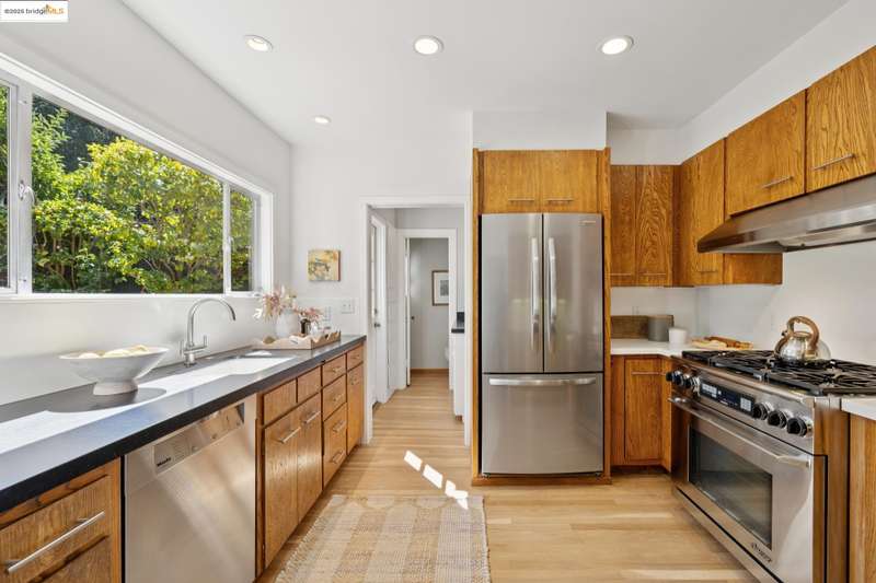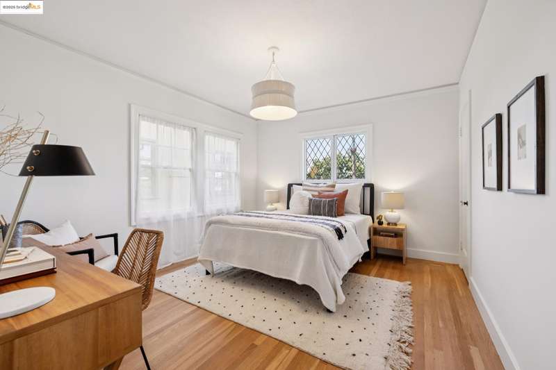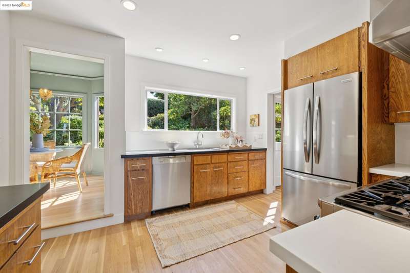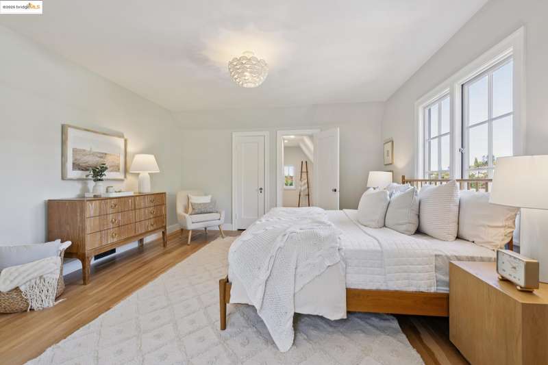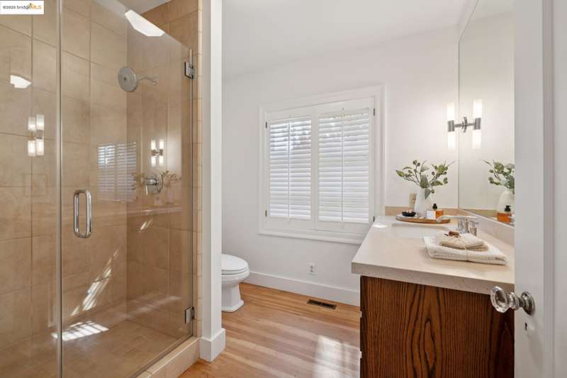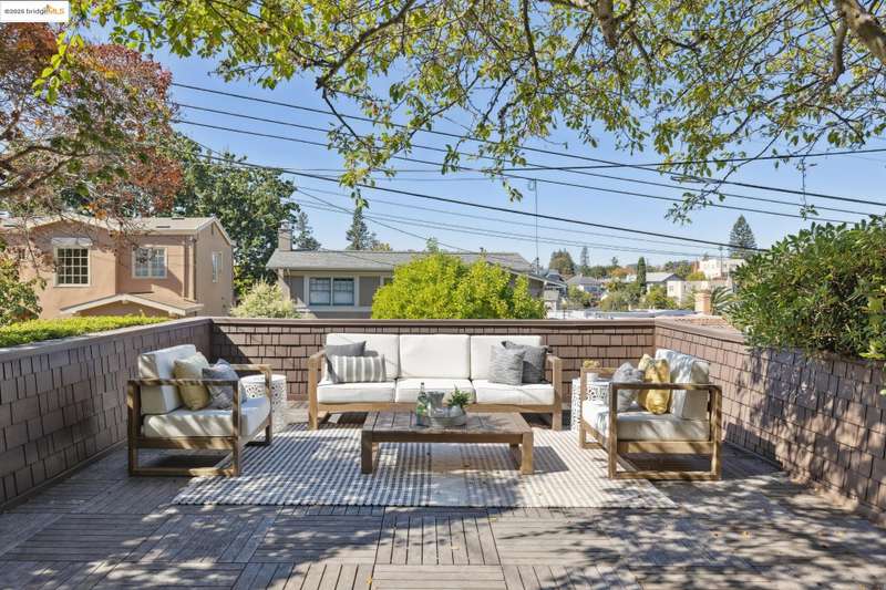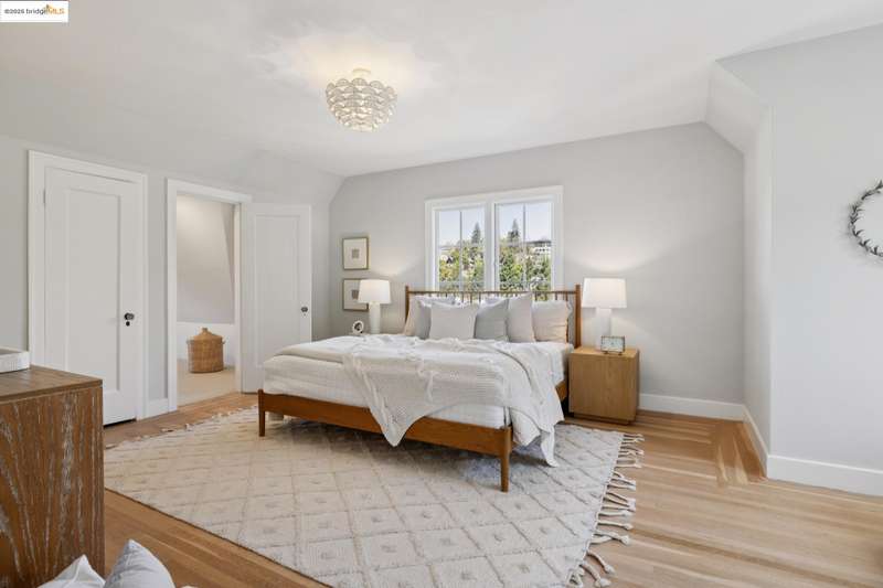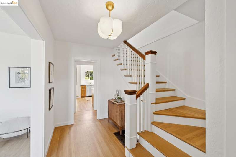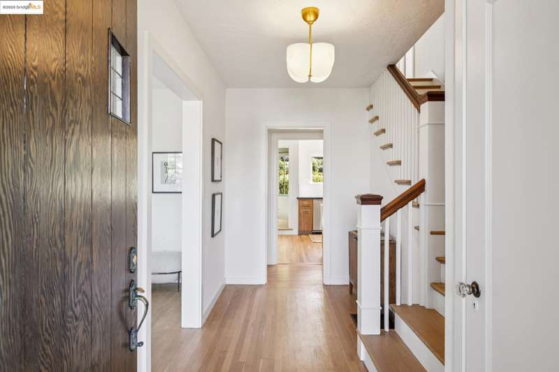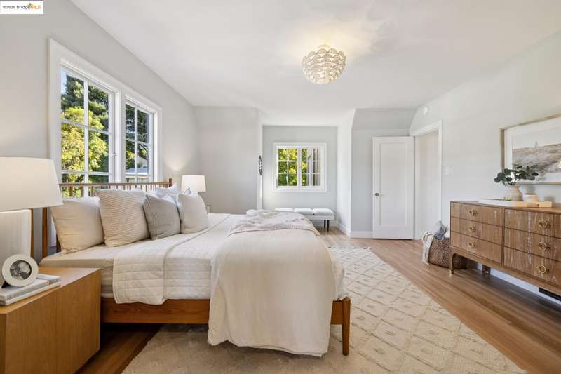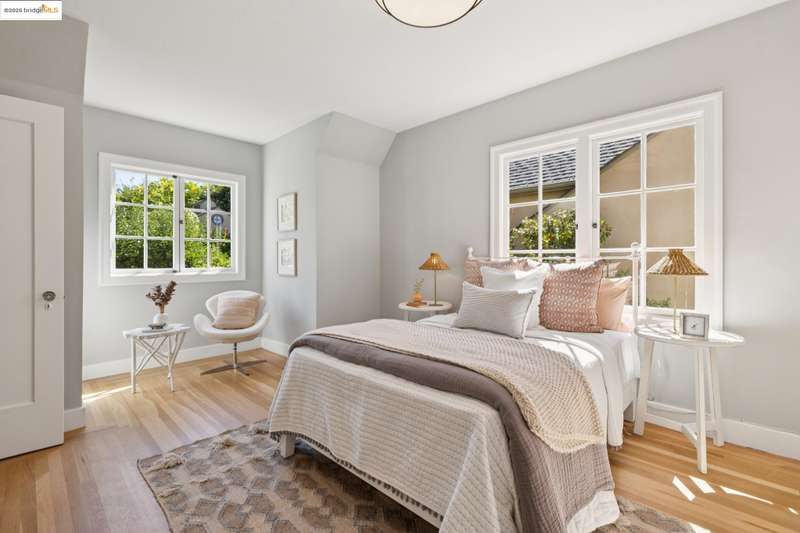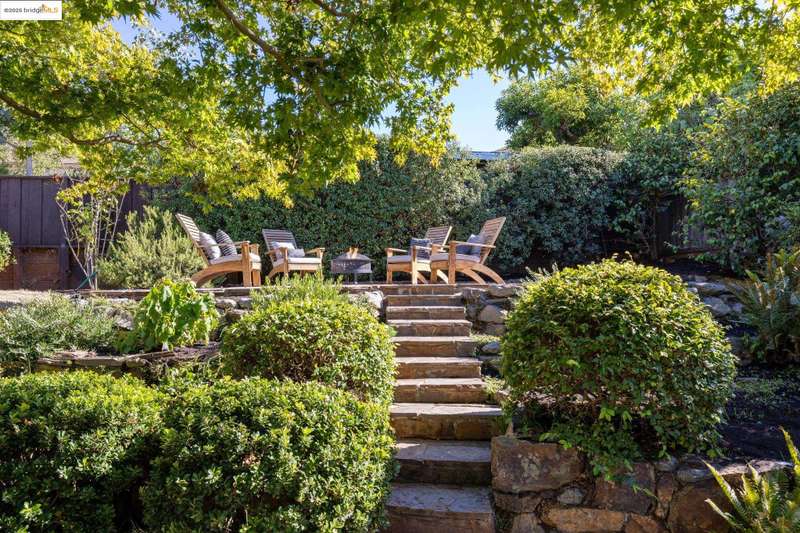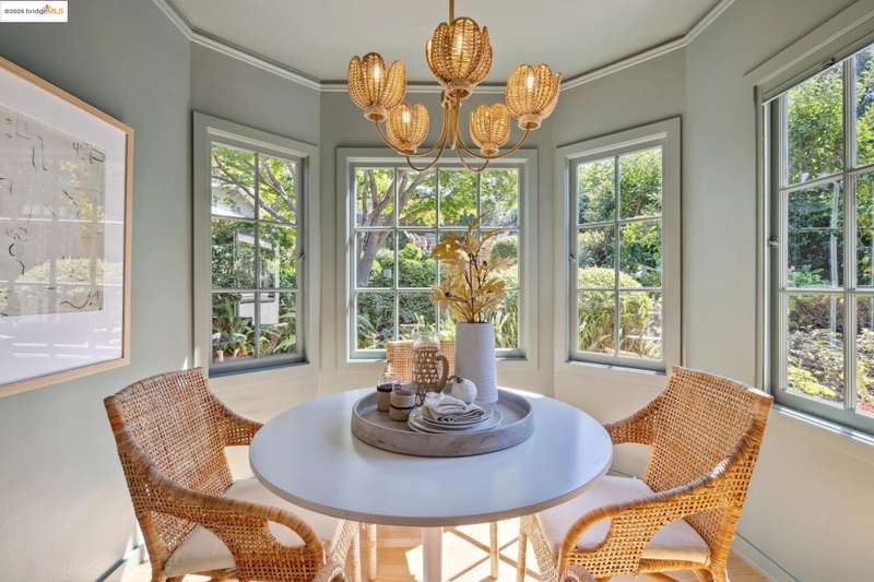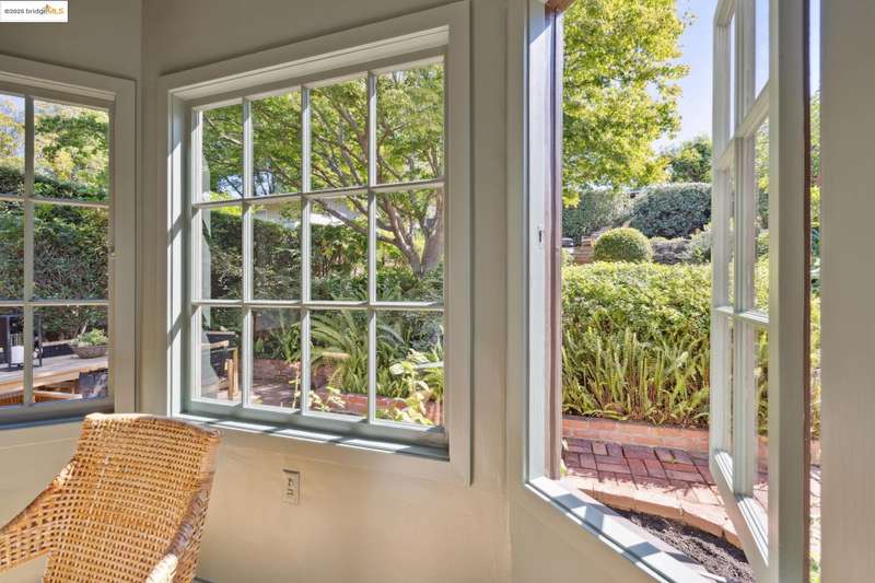 Ideally located close to schools and parks and surrounded by lovely gardens, this classic Piedmont Tudor blends timeless architectural details with exceptional livability. A gracious entry welcomes you, setting the tone for its elegance and warmth. Gleaming hardwood floors and abundant natural light define the living room, complete with floor to ceiling windows, while the spacious formal dining room opens through French doors to a brick patio, perfect for al fresco gatherings. The adjoining charming breakfast room and kitchen, featuring a six-burner range, combine functionality with inviting character. Upstairs, light-filled bedrooms overlook the landscaped gardens, where mature trees, a fruiting apple tree, and an upper patio create a serene private retreat. A sunny front deck offers yet another space to relax or entertain. With a convenient main-level en suite bedroom, ample basement storage, garage, and an unbeatable location near top-rated schools and parks, this home exemplifies Piedmont living at its finest.