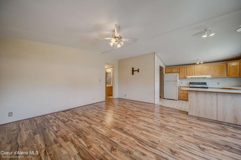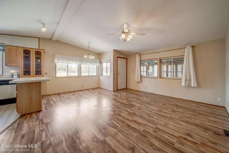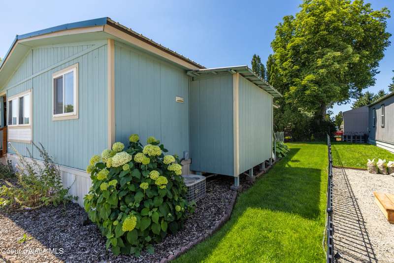 Clean and well-kept 2 bedroom, 2 bathroom manufactured home featuring 1,076 sq ft of living space plus a sunroom for additional square footage and flexibility. The open kitchen features a breakfast bar and flows seamlessly into the dining area. Enjoy central A/C, generous closets, and abundant natural light. Outside, the beautifully landscaped yard includes a newer, clean 10 x 20 garden shed for additional storage. Conveniently located just minutes from shopping, schools, and easy freeway access. Move-in ready and easy to show.