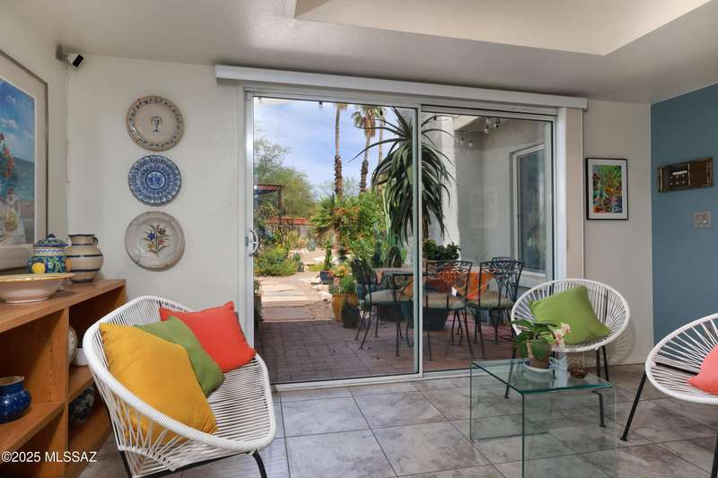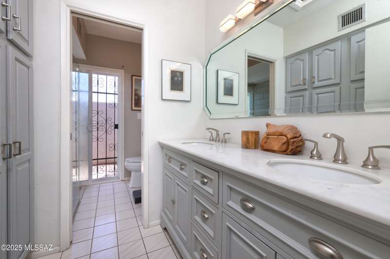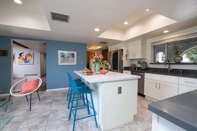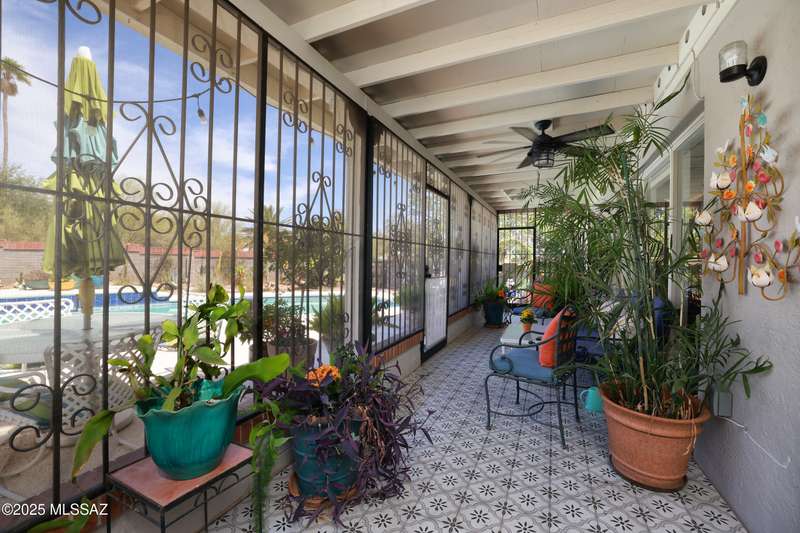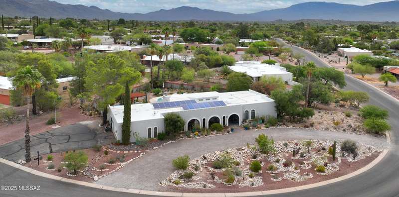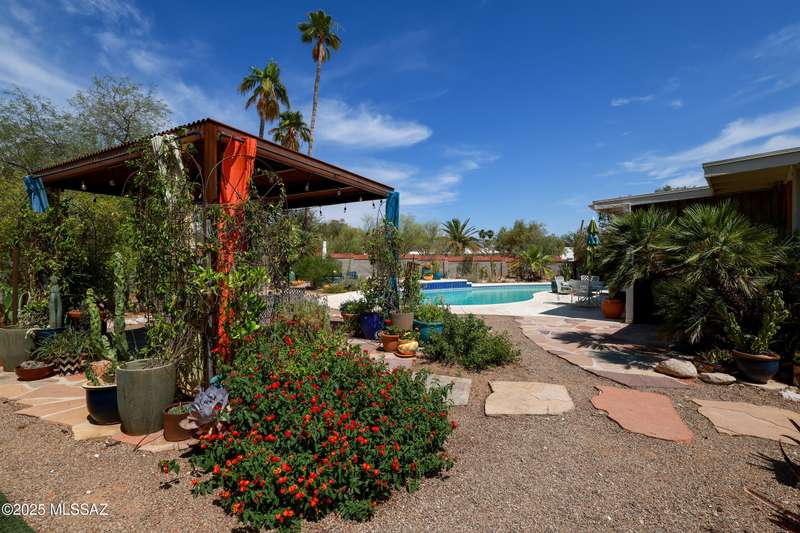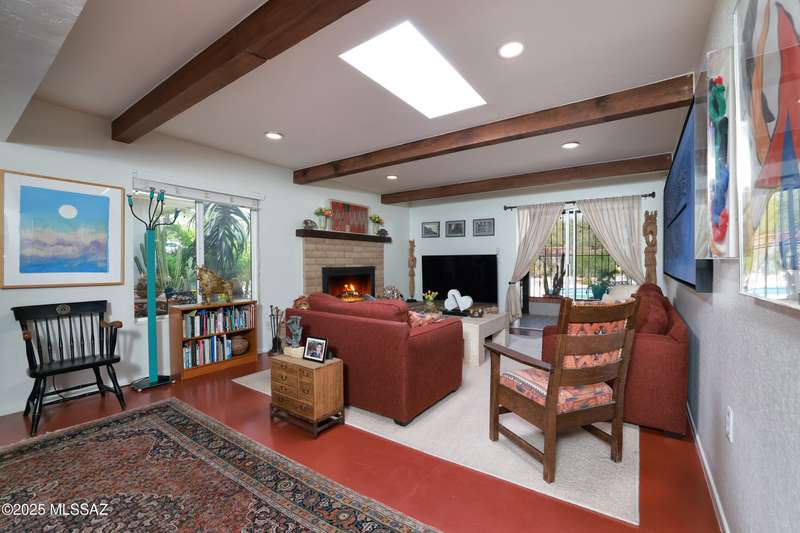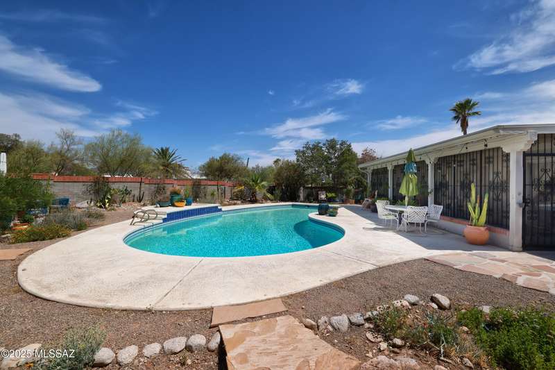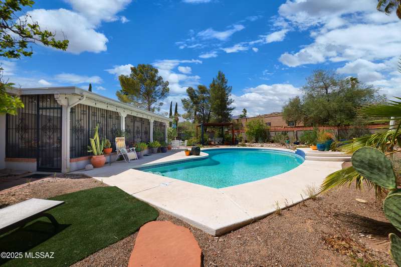 Charming north side retreat on a large elevated corner lot in desirable Sabino Vista Knolls. Solid masonry construction with 5 bedrooms & 3 full baths. Tastefully updated estate with a new island kitchen, a butler's pantry, 3 new baths, all with quartz counters. Stunning stained concrete floors. Wonderful living spaces include a large formal dining room, entertaining size living room with vaulted ceilings and a wall of glass, family room with a fireplace and wet bar. The back yard is a beautifully landscaped retreat featuring a sparkling pool, free standing Ramada, arbor, a screened porch and multiple seating areas with views of the mountains. The owned solar system keeps your electric bills low. Award winning schools! Established beautiful neighborhood. This is a very special property!
