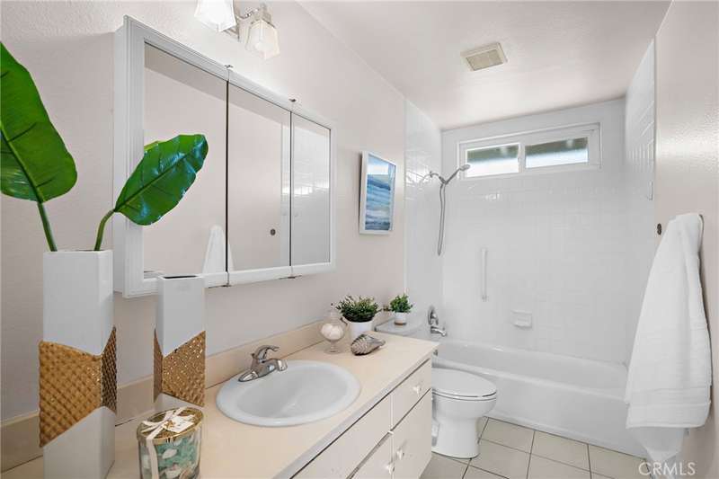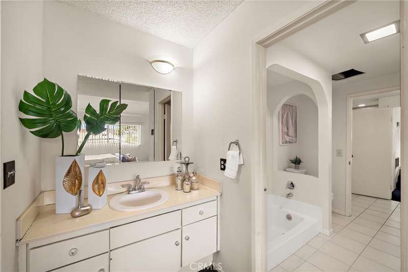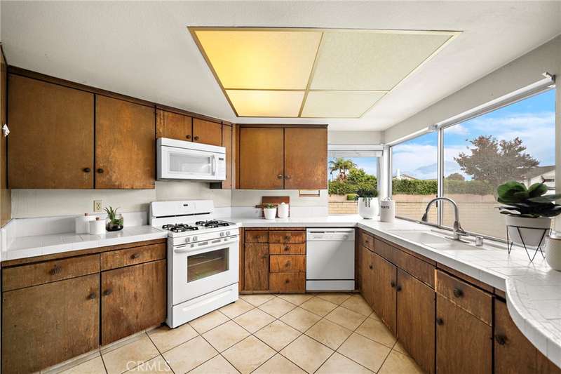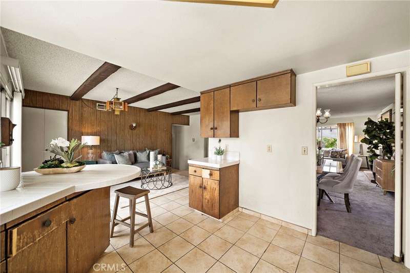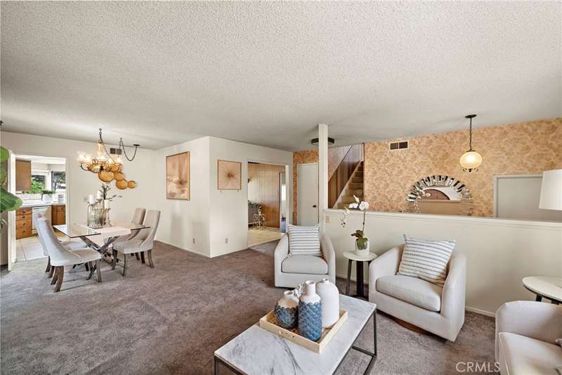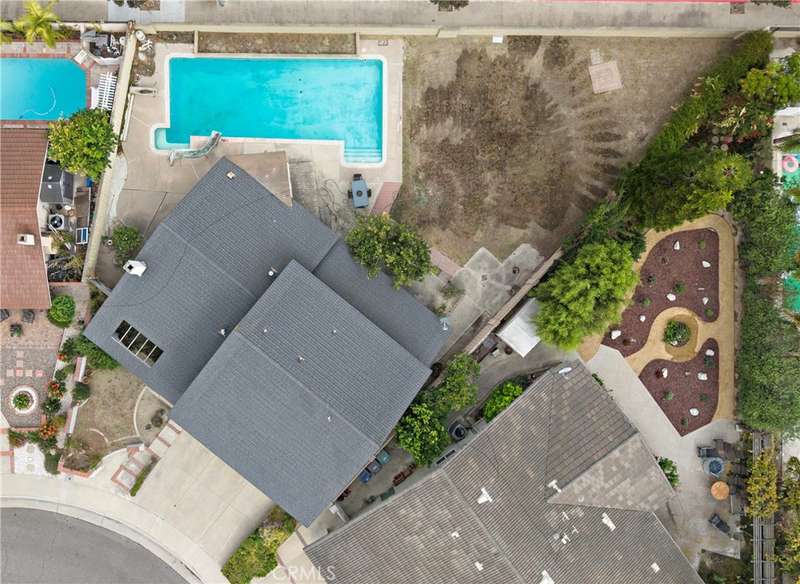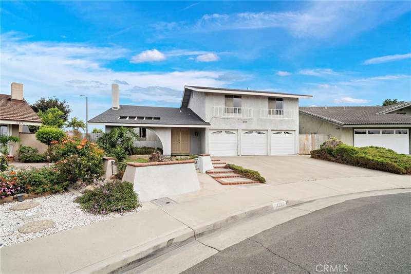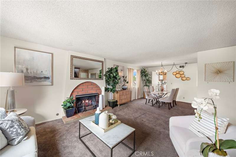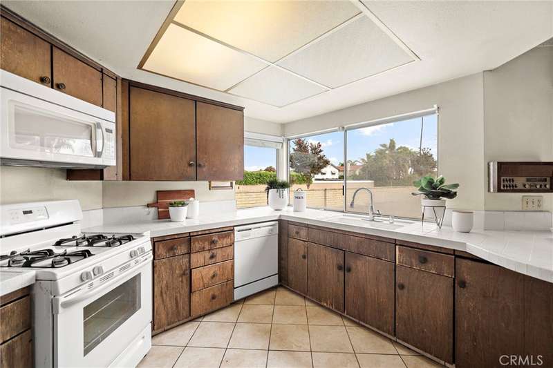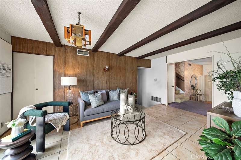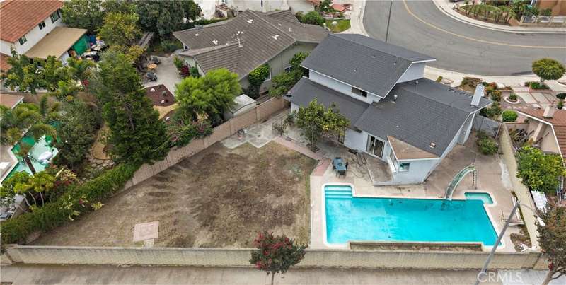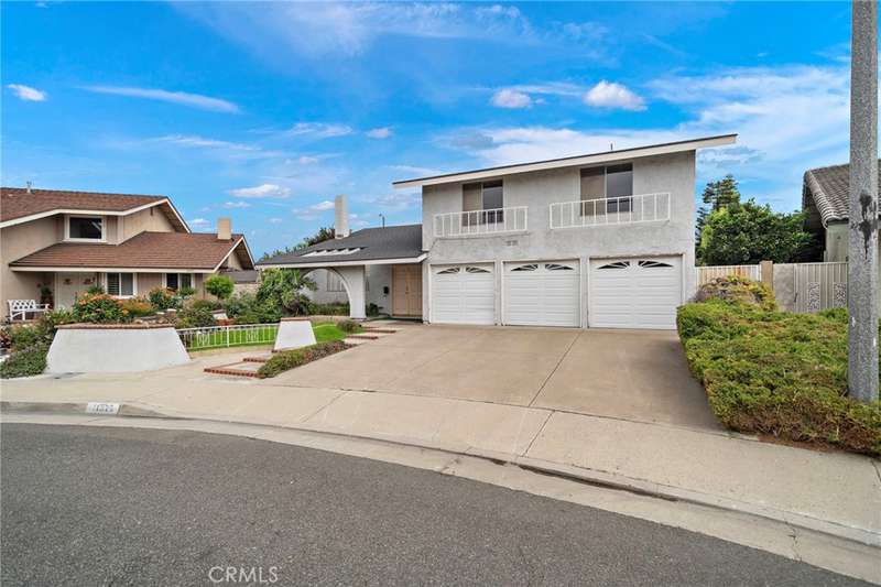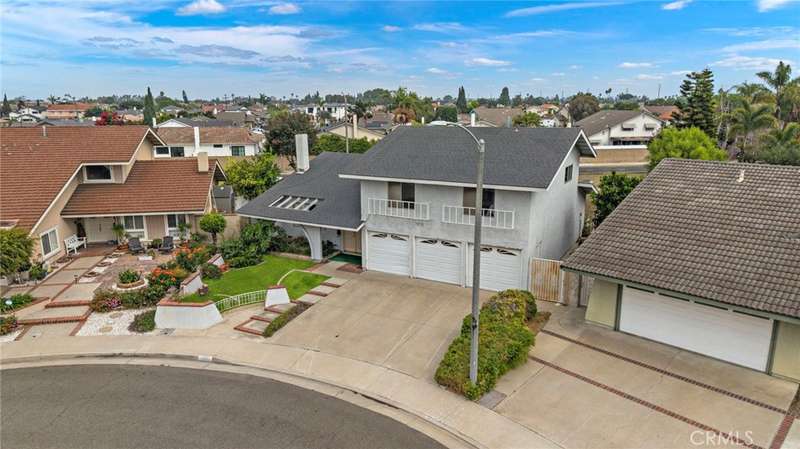 This 5 Bedroom, 3 Bath La Linda Pool Home presents a rare and exciting fixer opportunity to be sold in as is condition, offering 2,303 square feet of living space, a desirable downstairs primary suite, a 3-car garage, and an expansive 10,578 square foot lot with endless potential for an ADU, expansion, or resort-style backyard. Ideally located within walking distance to Mile Square Park and close to shopping, dining, golf, recreation, Little Saigon, and just a short drive to the beach, this property is all about possibilities. Step through the double entry doors to a tiled foyer that leads to a spacious step-up formal living room with fireplace and adjacent formal dining area. The sunlit kitchen features tile counters, a gas range, microwave, dishwasher, breakfast bar, and wraparound windows overlooking the pool, and it opens to a cozy family room with sliding doors to the enormous backyard with pool, concrete deck, rose garden, fruit tree, and large lawn area perfect for gatherings and entertaining. The extra-large downstairs primary suite boasts vaulted ceiling, retreat area, and walk-in closet, while upstairs offers 4 additional bedrooms, including two that are oversized, plus a full guest bath with tub/shower combo. Direct access leads to the 3-car garage, currently partially enclosed for laundry/hobby use but easily restored to full capacity. Original 1971 condition, this home needs paint, flooring, and cosmetic updates, but with great bones, an unbeatable floorplan, and a lot size rarely available in this neighborhood, it's a diamond waiting to be polished.