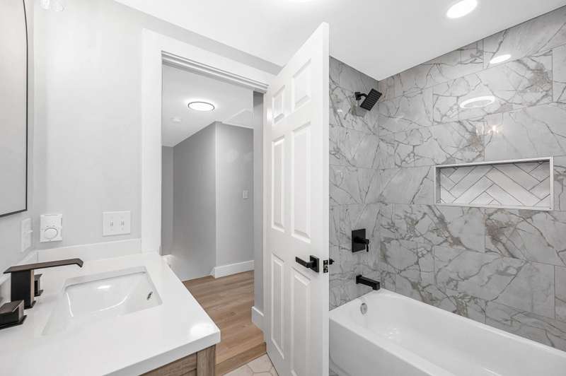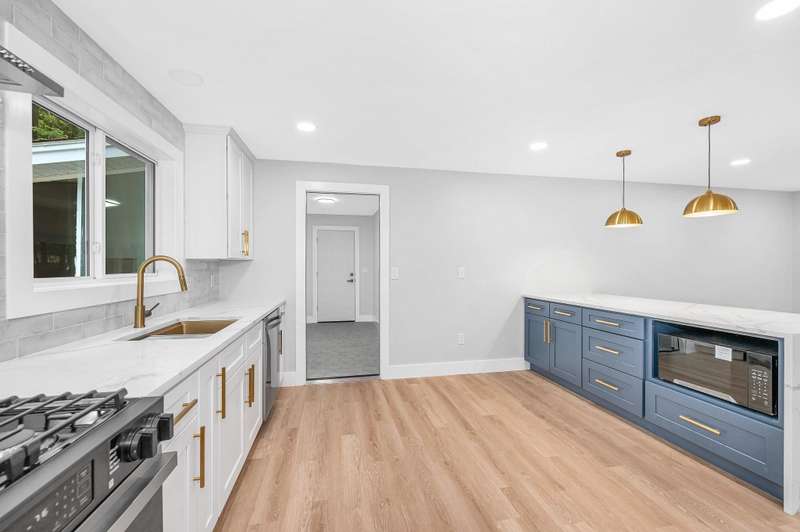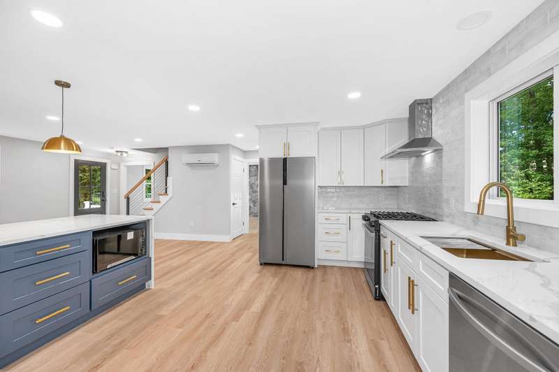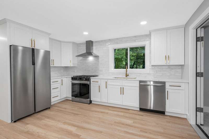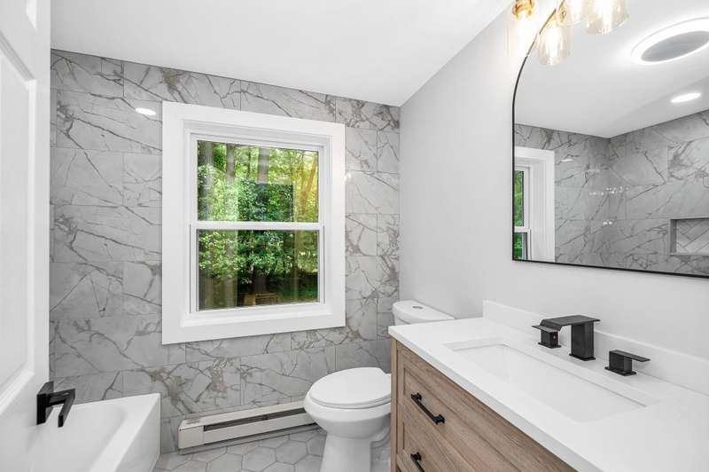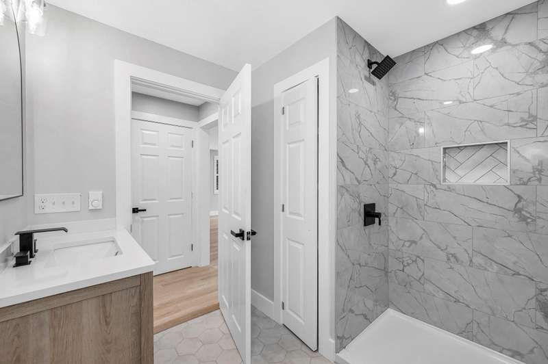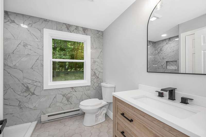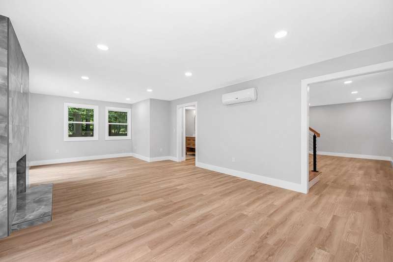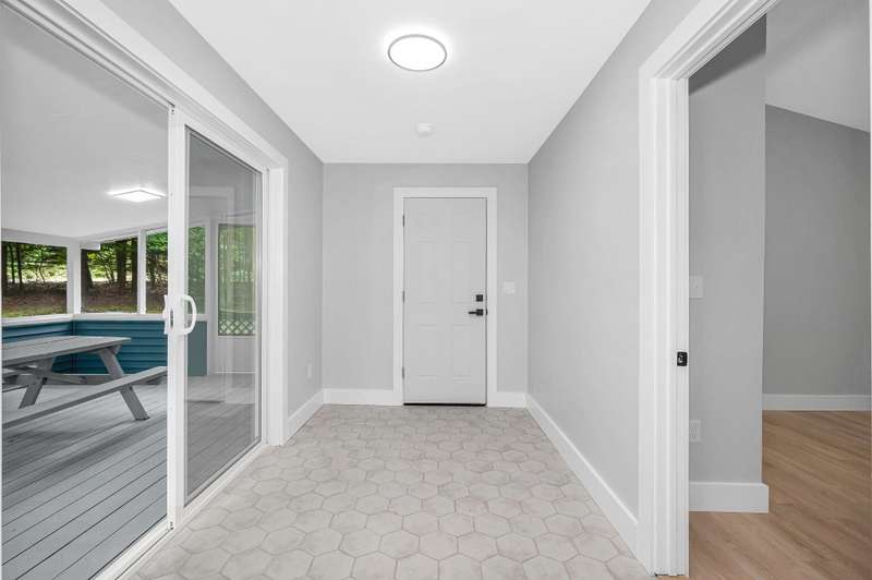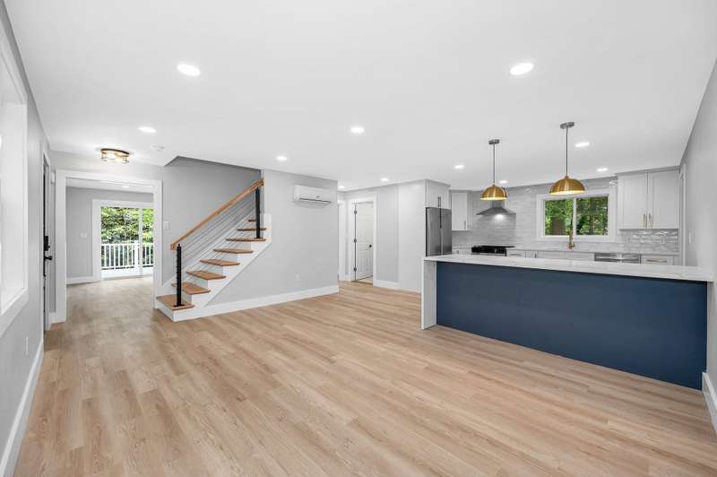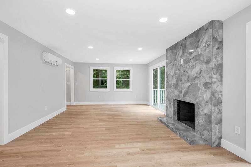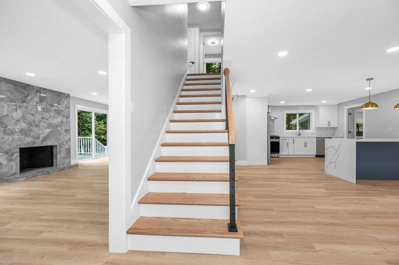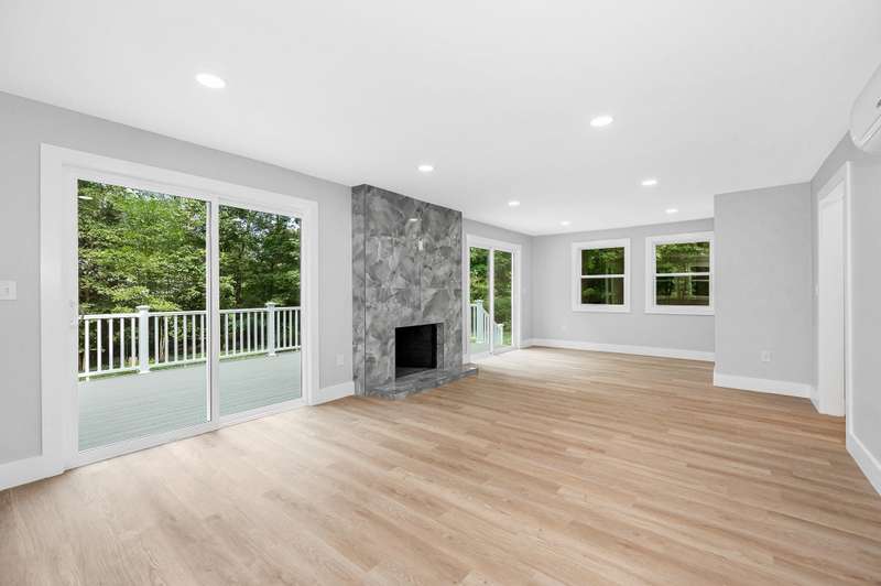 The best deal in town — with an unbeatable price per square foot! Seller is motivated and ready to accept an offer. Welcome to highly desirable South Nashua! Just minutes from Bicentennial Elementary, this stunning, fully renovated home has been reimagined from top to bottom with today’s most sought-after finishes. Offering 4 spacious bedrooms and 2 beautifully updated baths, this home is truly turnkey w/ a new roof, new siding, new windows, updated electrical, luxury vinyl plank flooring throughout, & all-new designer light fixtures. The open-concept floor plan is filled w/ natural light and features a front-to-back living room centered around a striking custom tiled fireplace. The gourmet kitchen is a showstopper w/ high-end stainless steel appliances, a waterfall quartz island w/ custom cabinetry, and sophisticated gold accents. Bathrooms shine with modern upgrades and custom tile backsplashes. Upstairs, the primary impresses with its own fireplace, accent wall, and walk-in closet w/ custom shelving. The oversized finished basement with tile flooring and walkout adds versatile living space, perfect for a family room, gym, or playroom. Step outside to your private backyard oasis, complete with an expansive deck and three-season porch — ideal for entertaining or relaxing. Enjoy peace and serenity from the comfort of your own home, nestled in seclusion and surrounded by trees. Nothing to do but move right in and enjoy everything that this beautiful home has to offer!
