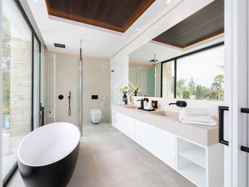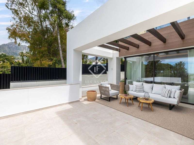Located on the highest and most private plot in the area, this four-bedroom, five-bathroom residence offers refined living across three exquisitely designed levels. Built in 2023 and designed by the esteemed architect Ernesto Palanco, this villa exudes contemporary sophistication with Mediterranean charm. The spacious layout includes 753 m² of interior space, complemented by 258 m² of terraces, all set on a generous 1,005 m² plot. On the ground floor, expansive open-plan living areas blend seamlessly with the outdoors. A designer kitchen equipped with premium Gaggenau appliances flows into the dining and lounge spaces, which overlook the private heated pool and landscaped garden. A guest suite with en-suite bathroom and a guest toilet complete this level. Upstairs, the luxurious main suite opens to a sun-drenched private terrace, and features a custom dressing area and spa-like bathroom with floor-to-ceiling windows. Two additional en-suite bedrooms offer elegant finishes and ample storage. The lower level is dedicated to leisure and wellness: a private cinema room, fully stocked wine cellar, state-of-the-art fitness room, steam and sauna facilities, and a relaxing lounge ensure every need is met. The rooftop solarium crowns the home with a jacuzzi, outdoor kitchen, and panoramic sea and mountain views. This villa is more than a home, it is a lifestyle of elegance, security, and unrivalled proximity to everything that makes Marbella extraordinary. Please contact us for further information.